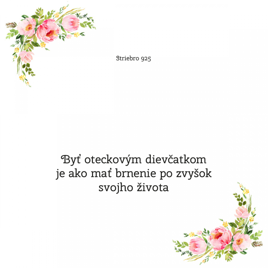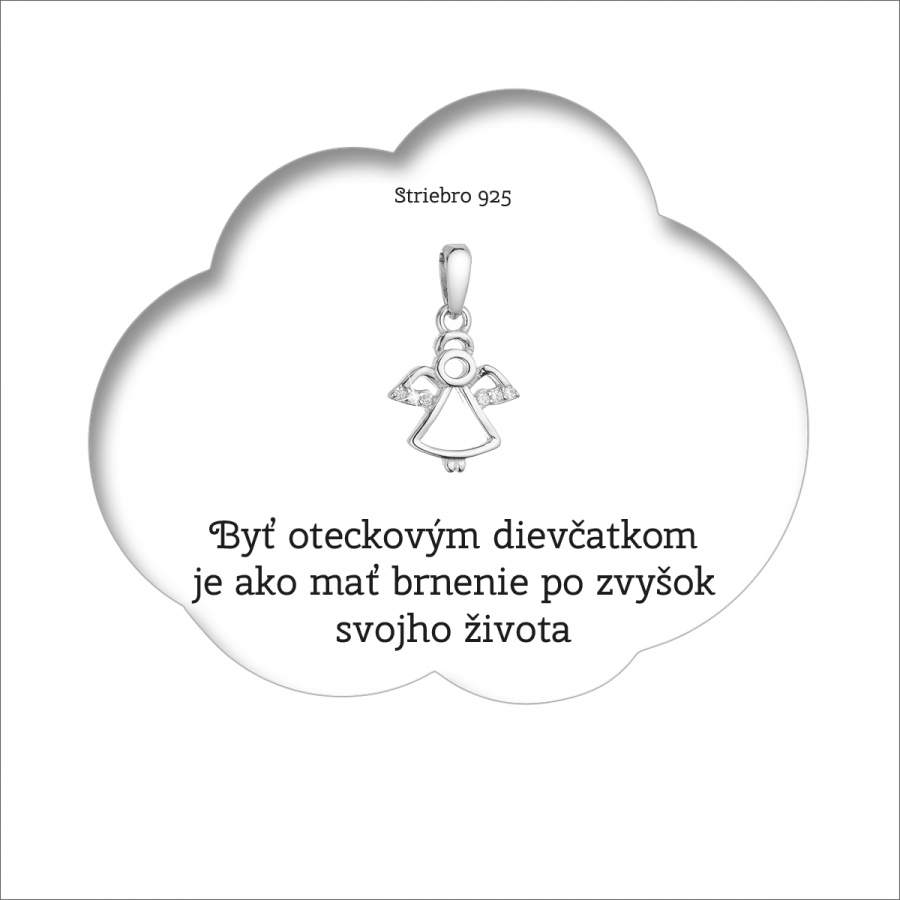 Darčekový set obsahuje strieborný prívesok anjelika, ktorý je zavesený na darčekovej karte s nádherným prianím "Byť oteckovou dievčatkom je ako mať brnenie po zvyšok svojho života". Každý otec je hrdý na svoju jedinečnú dcéru, chce ju chrániť a dodávať pocit bezpečia.