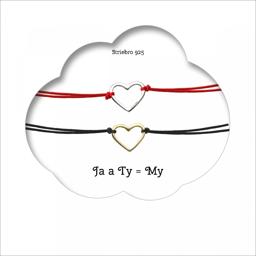 Náramky sú vyrobené z textilnej šnúrky so strieborným srdiečkom o rýdzosti 925/1000 s povrchovou úpravou ródiom a druhé srdiečko pozlátené. Šperk neobsahuje nikel , a tak je vhodný pre citlivé osoby aj pre alergikov.