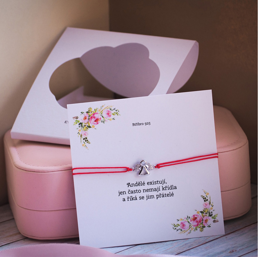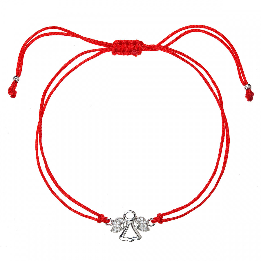 Kabbalah červený náramok strieborný anjel so zirkónmi 13020.3