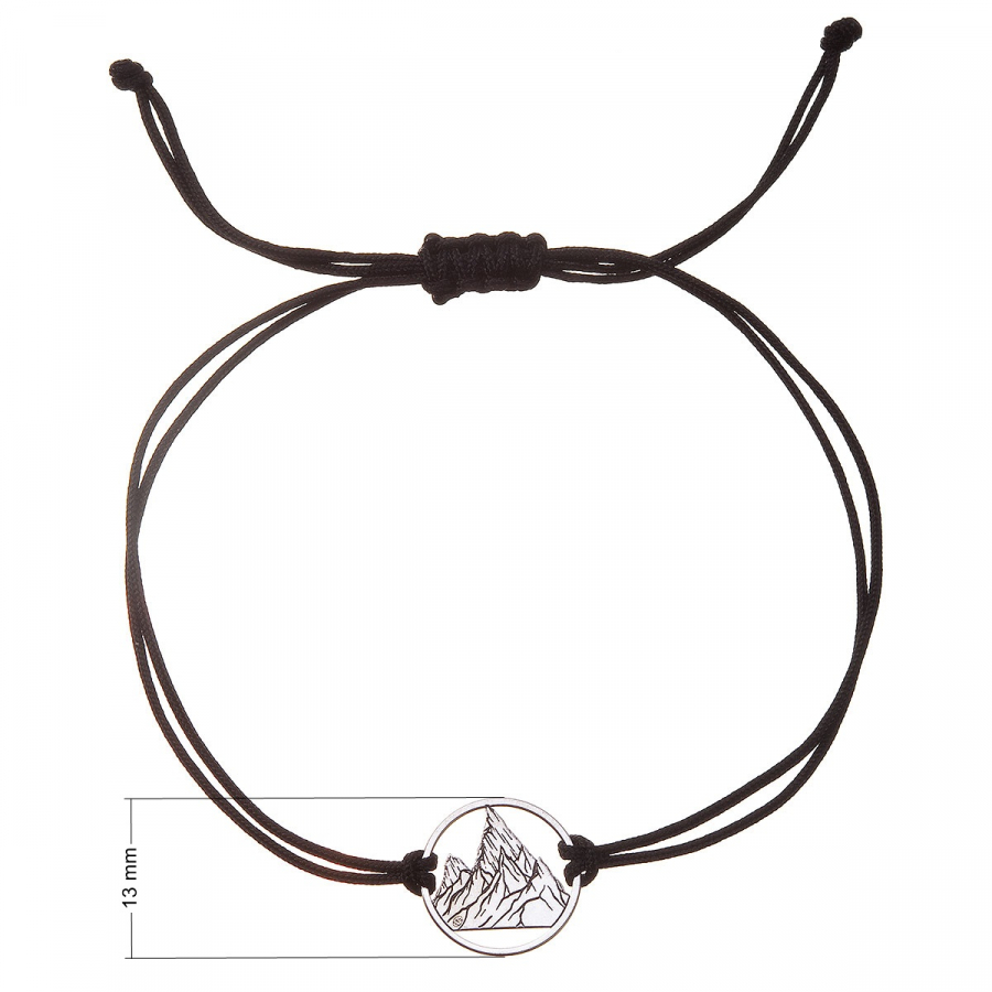 Dĺžka náramku 13078.3 sa reguluje posúvaním šnúrky v uzle, maximálna dĺžka je 25 cm. Strieborný krúžok s horami je vyrobený zo striebra 925/1000 a môžu ho bez problémov nosiť aj alergici, pretože neobsahuje prídavok niklu.