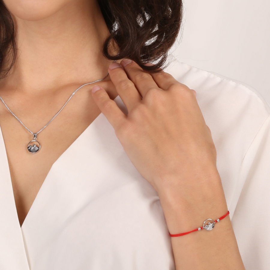 Náramok je vyrobený zo striebra rýdzosti 925/1000 . Na jeho povrchu je vrstva ródia, ktorá chráni šperk pred sčernením a zaisťuje jeho dlhotrvajúci lesk. Jemná kontúra hôr elegantne kontrastuje s červenou retiazkou, ktorá je nastaviteľná až do dĺžky 25 cm. Šperk pôsobí jemne a zároveň veľmi osobito - ideálny pre milovníkov prírody, dobrodružstva a slobody.