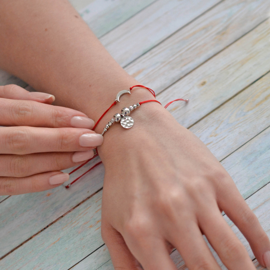Kabbalah náramok so strieborným mesiacom 13044.3 red
