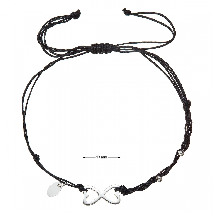 Dĺžka náramku 13048.3 sa reguluje posúvaním šnúrky v uzle, maximálne 25 cm. Strieborný symbol nekonečna je vyrobený z rhodiovaného striebra 925/1000 a môžu ho bez problémov nosiť aj alergici.