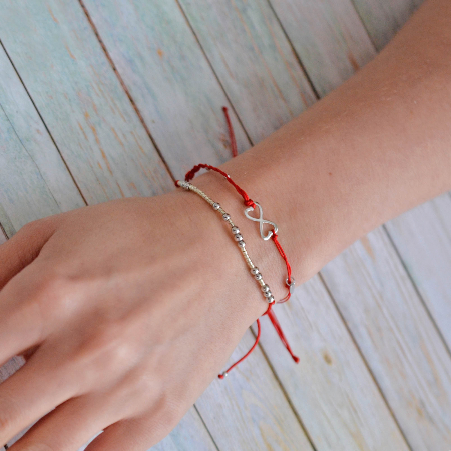 Kabbalah náramok so strieborným nekonečnom 13048.3 red