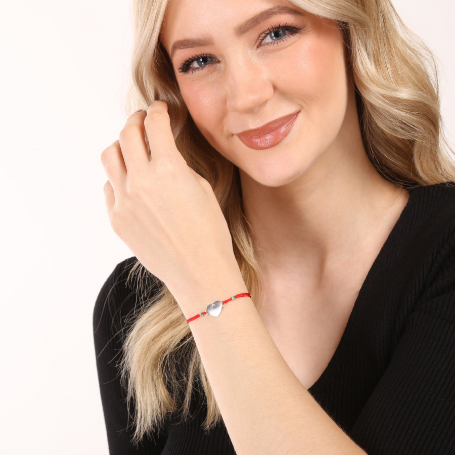 Prívesok srdca je vyrobený zo striebra rýdzosti 925/1000 a textilná šnúrka červená je z mäkkého, ale odolného materiálu, ktorý sa pohodlne nosí po celý deň. Jej flexibilita zaisťuje, že sa prispôsobí každému zápästiu.
