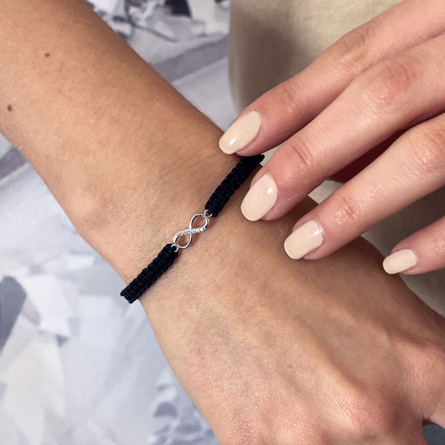 Parametre Kabbalah náramku proti uhranutiu so strieborným nekonečnom 13002.3 čierny