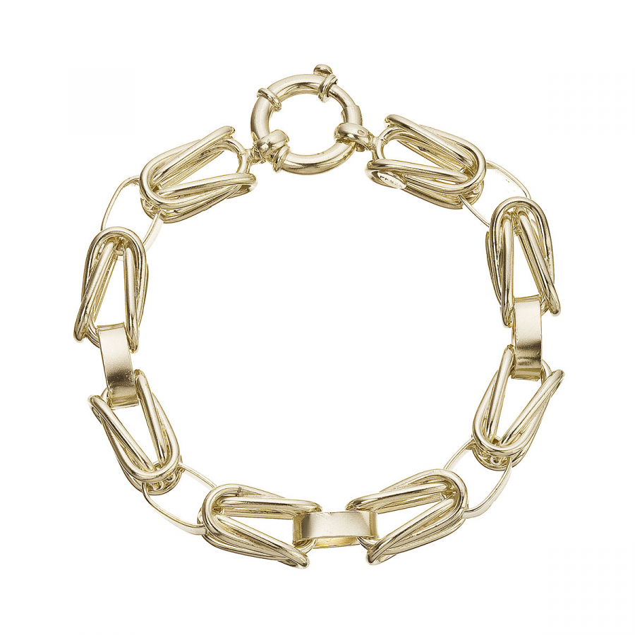 Originálny náramok z pozláteného striebra so silným charakterom je stvorený pre tých, ktorí sa neboja zažiariť. Veľké moderné články pôsobia odvážne, pritom si zachovávajú elegantnú krásu.