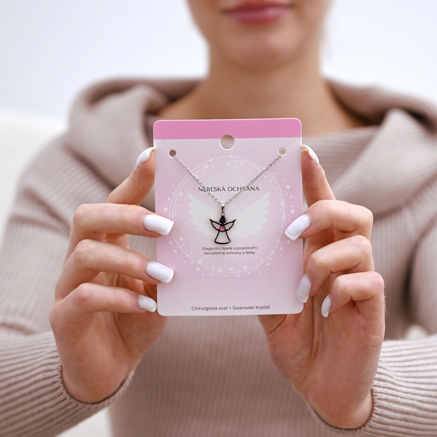 Náhrdelník anjel so Swarovski kryštálmi 42043.3 ružový