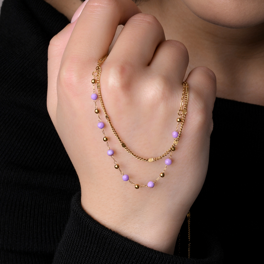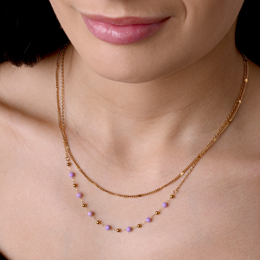 Náhrdelník oceľový s ametystom 42029.3