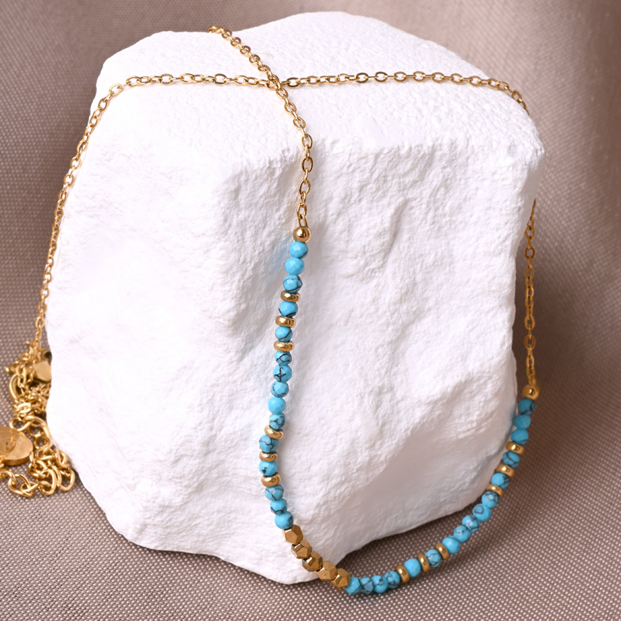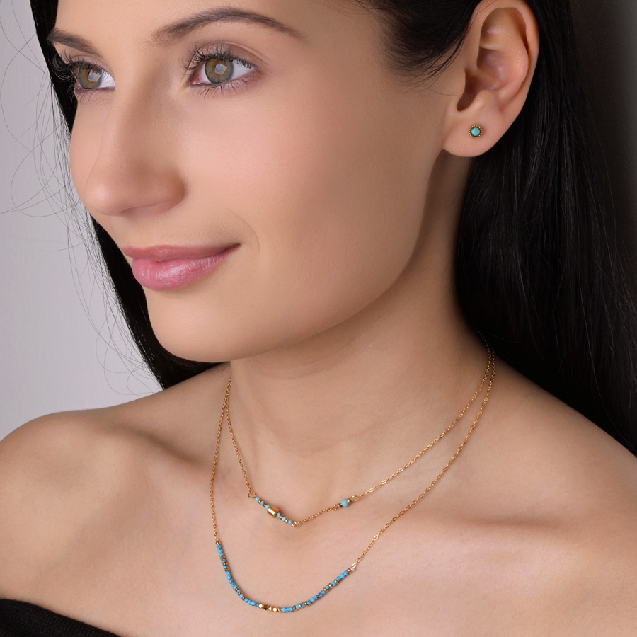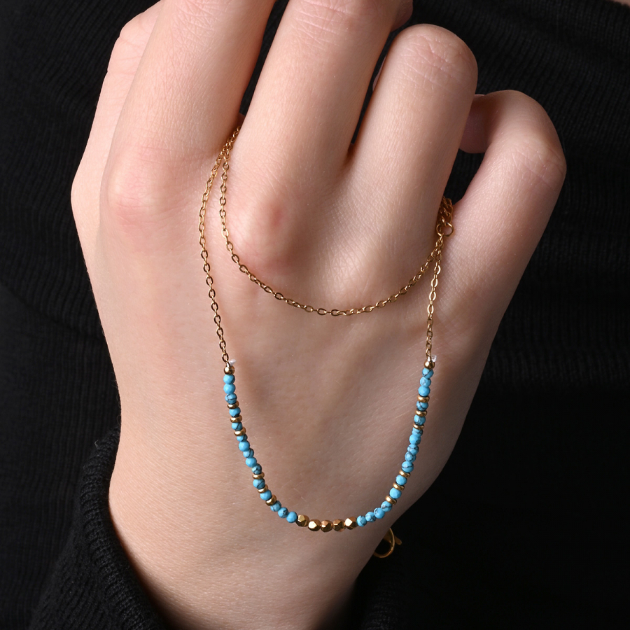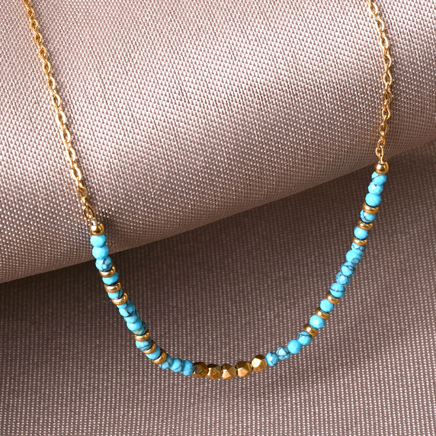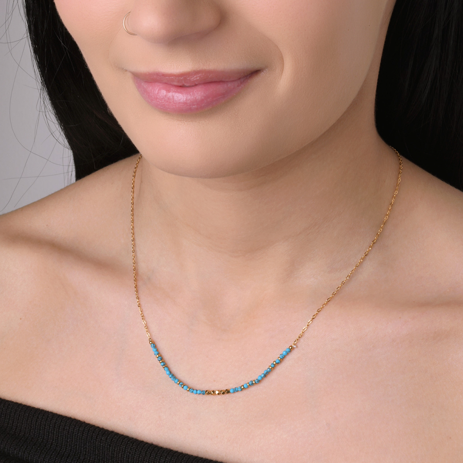 Náhrdelník oceľový s modrým tyrkysom 42034.3