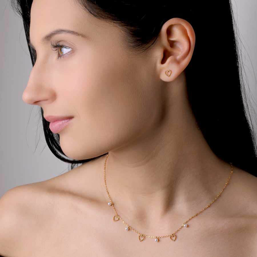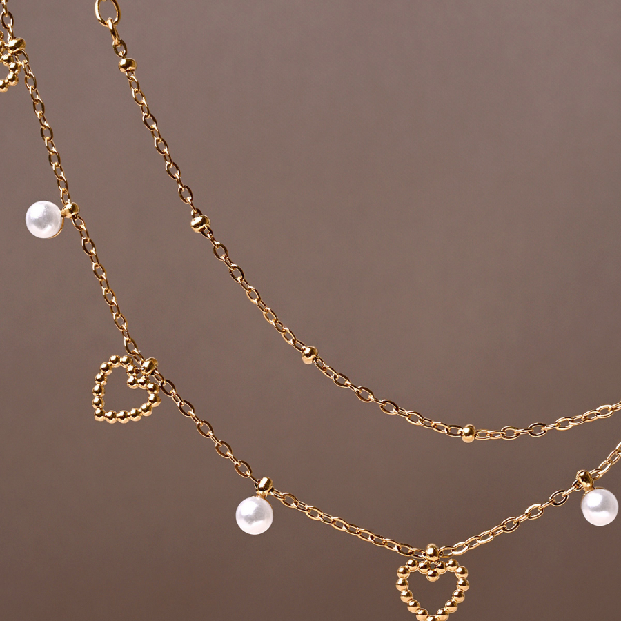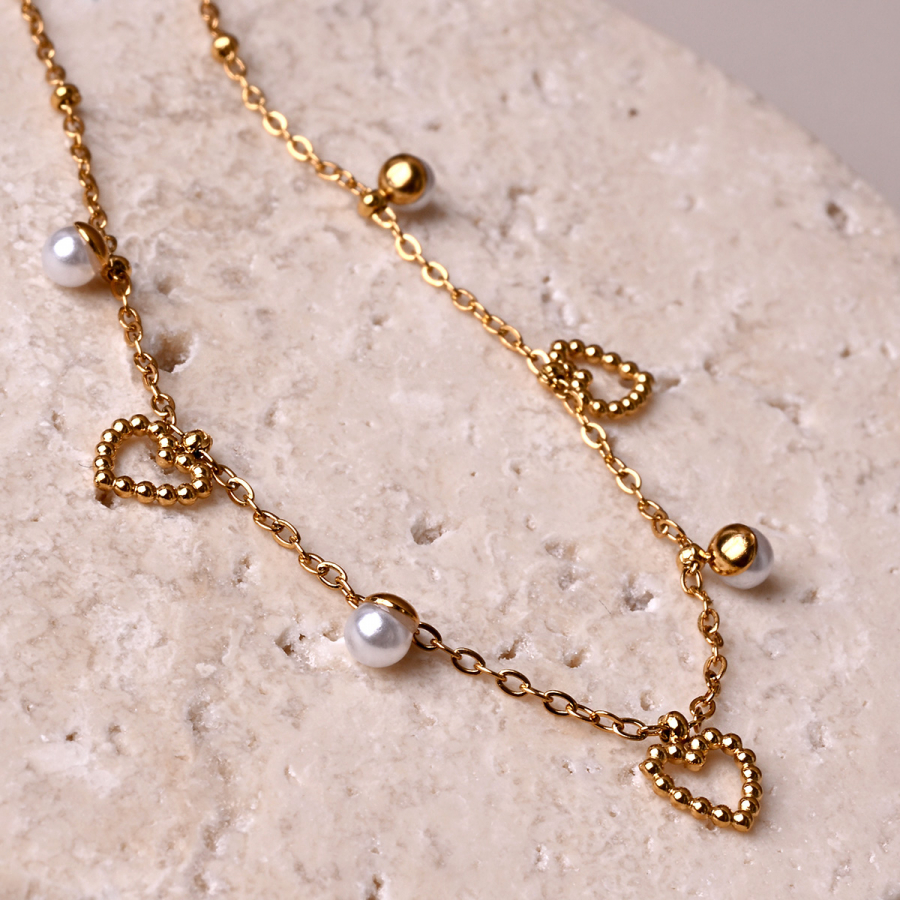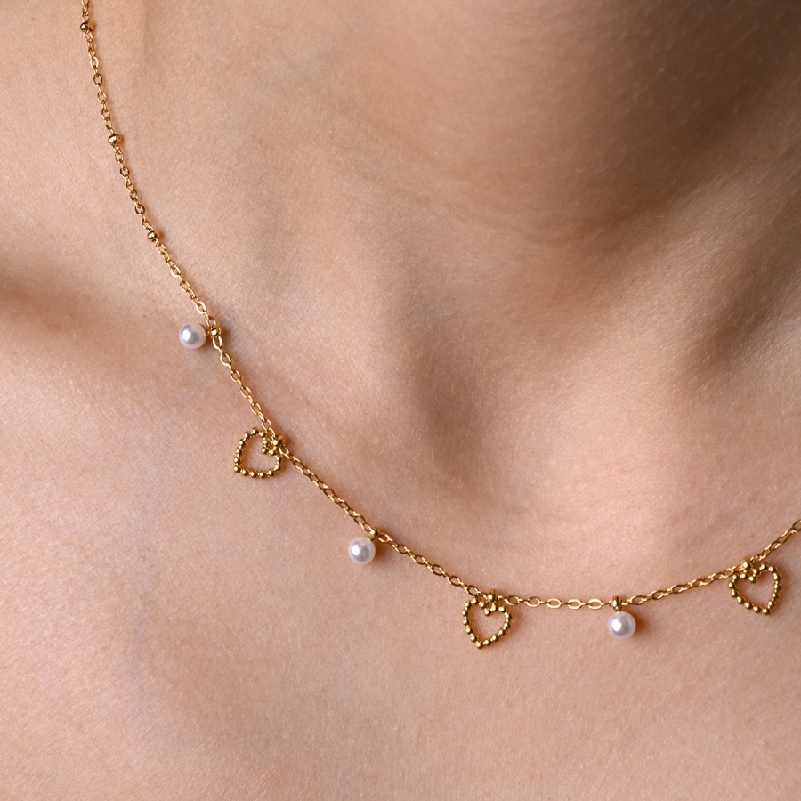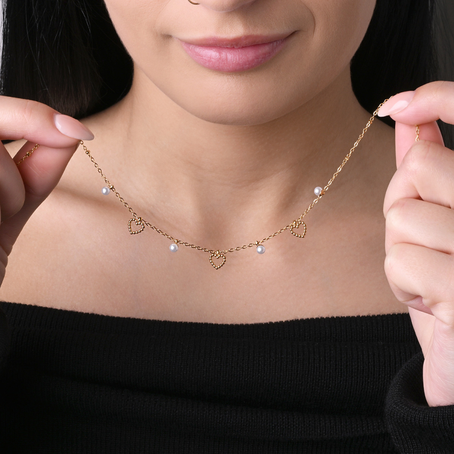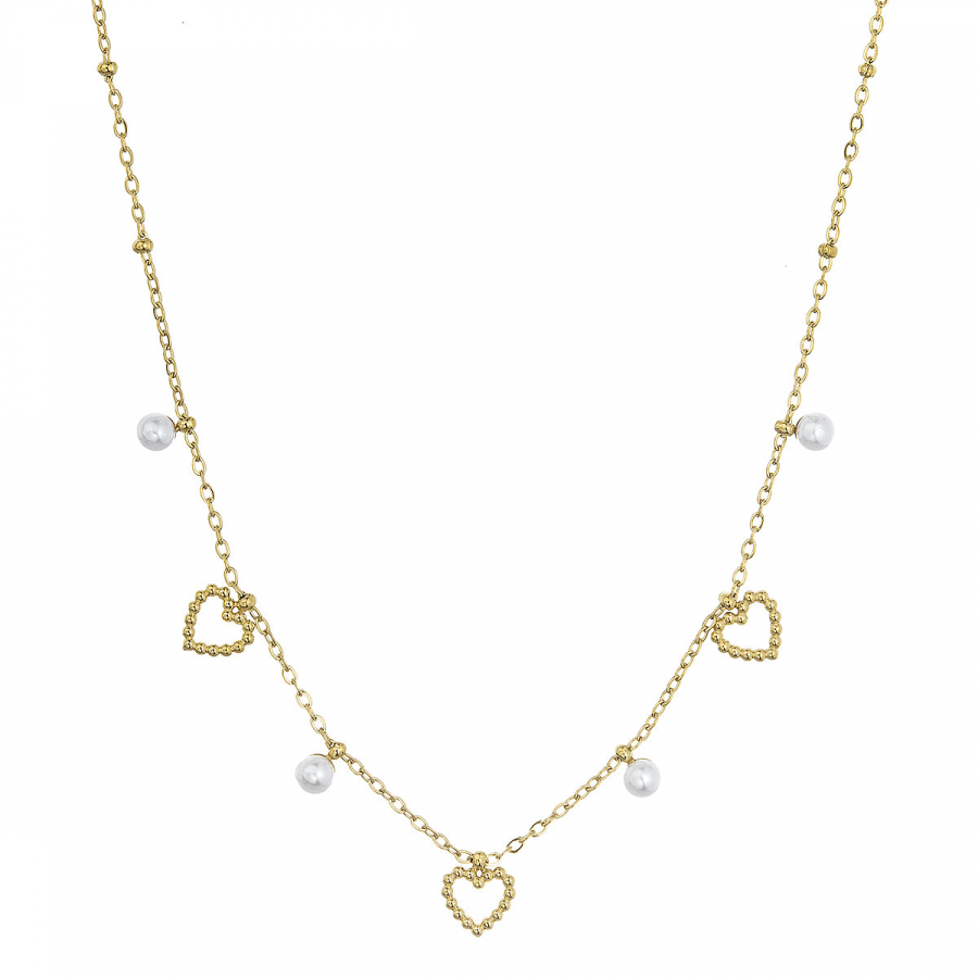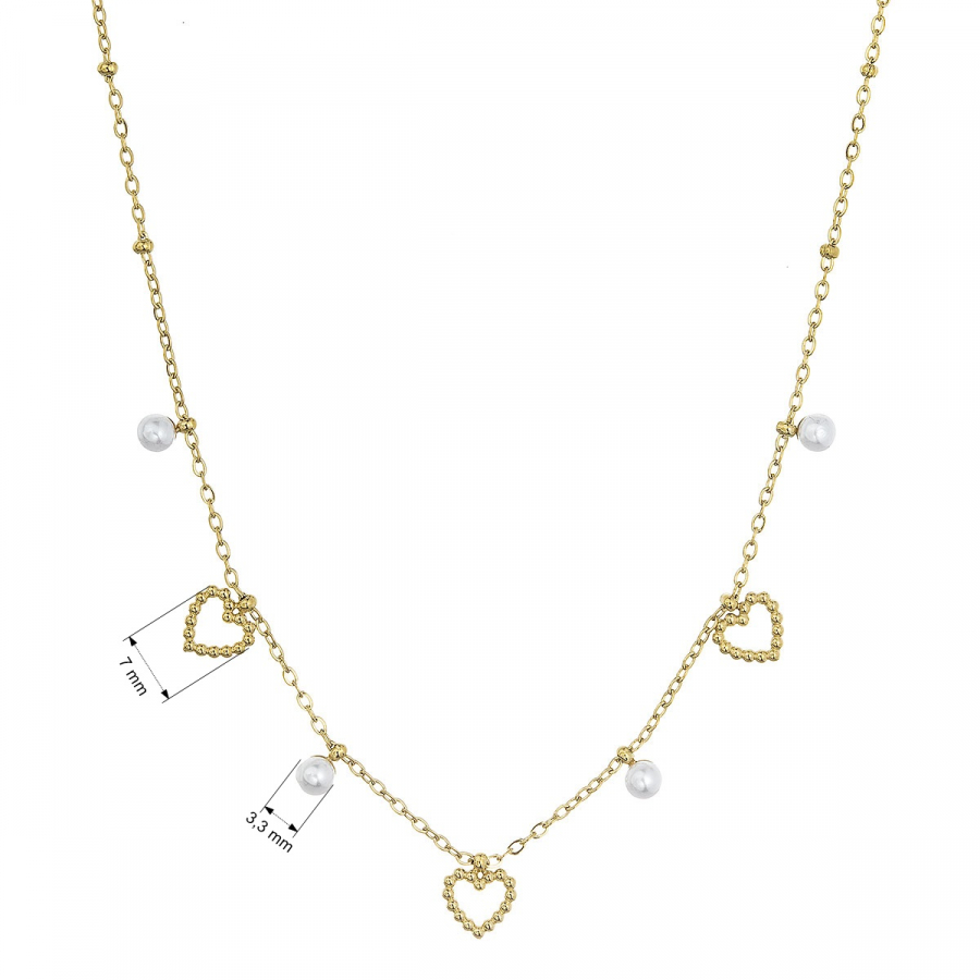 Náhrdelník oceľový s perličkami a srdiečkami 42024.1