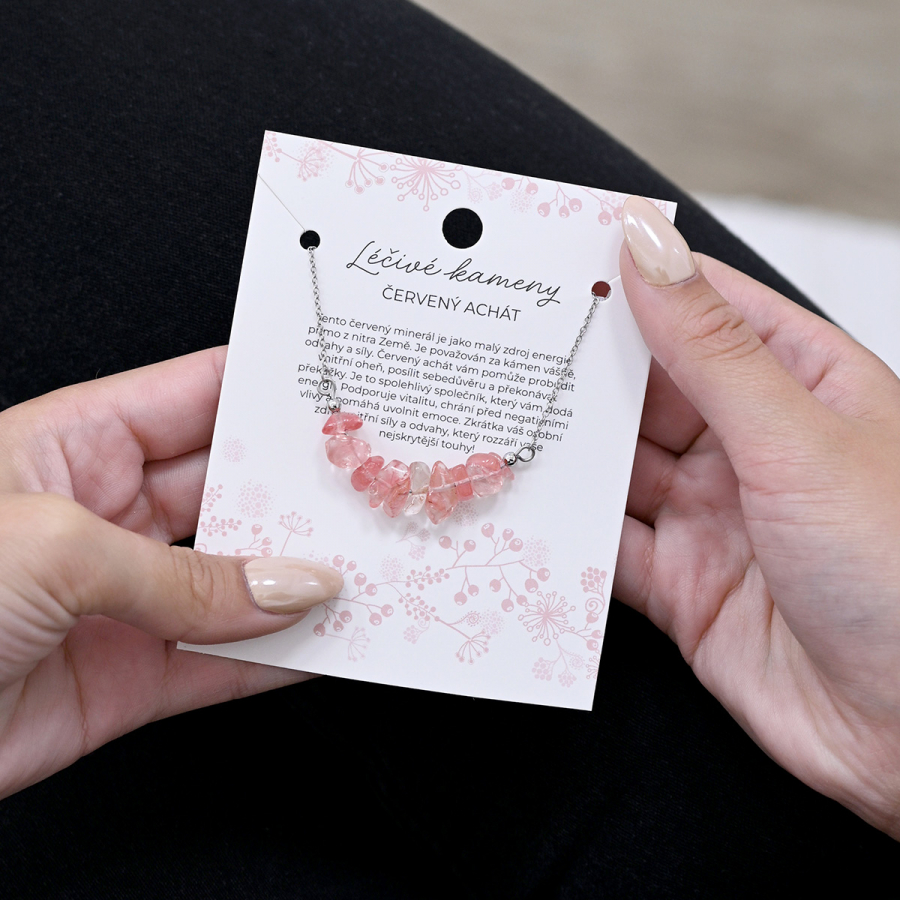 Náhrdelník s kameňom červený achát 42037.3 oceľ