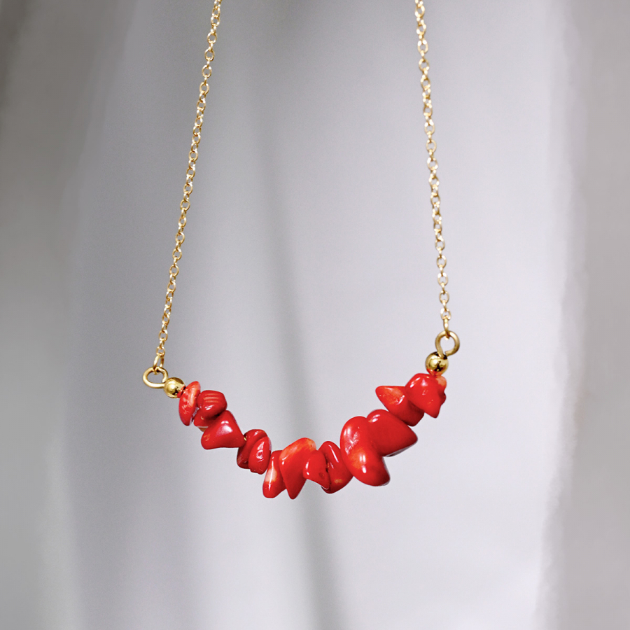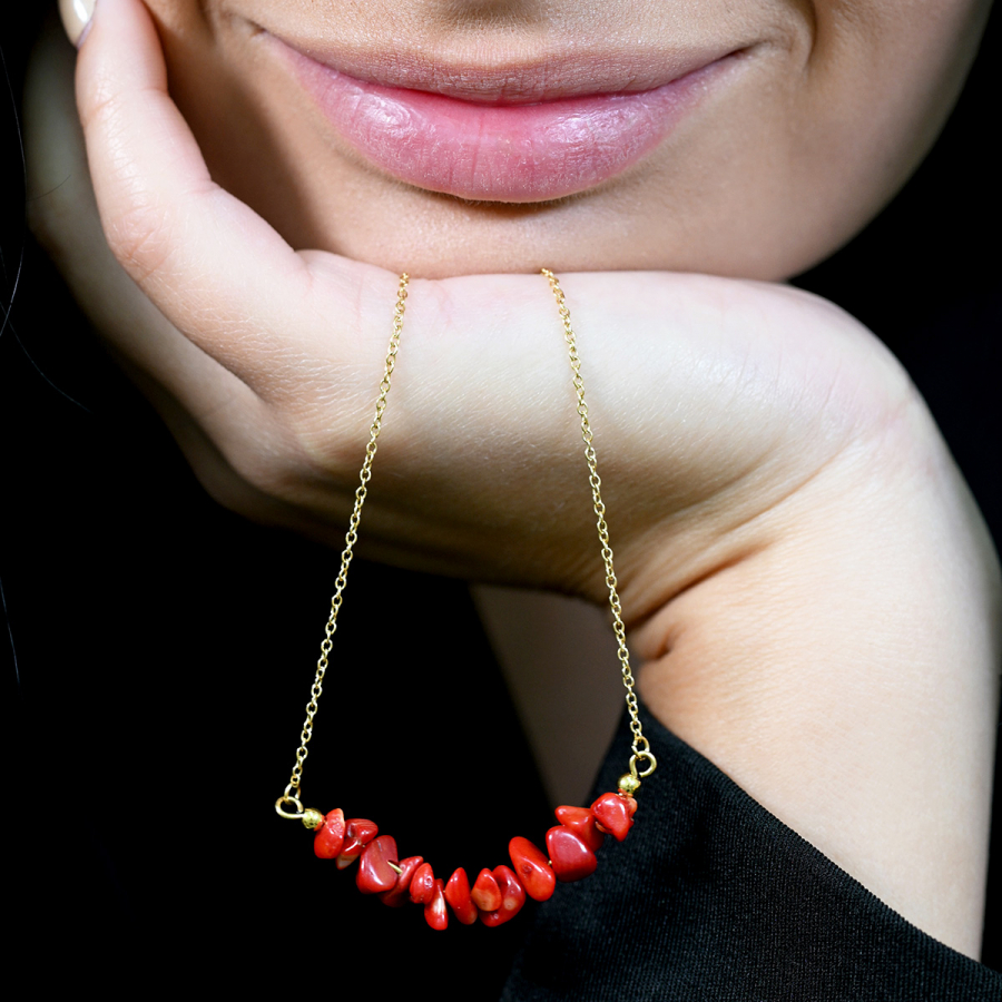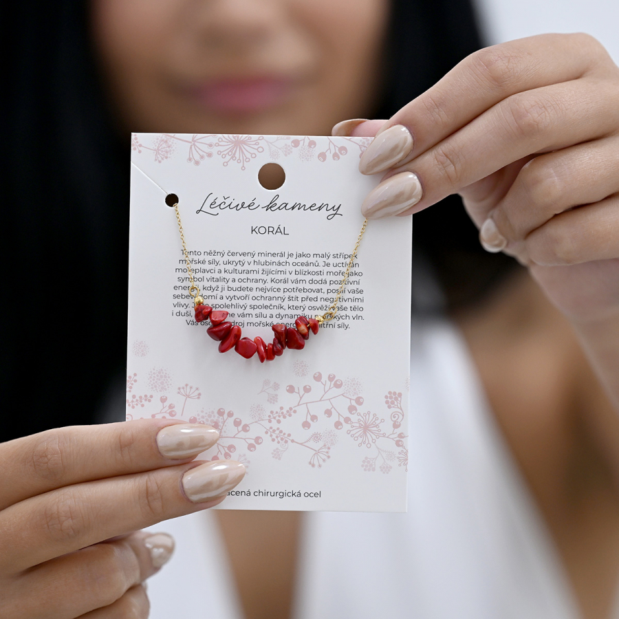 Náhrdelník s kameňom koral 42037.3 oceľ