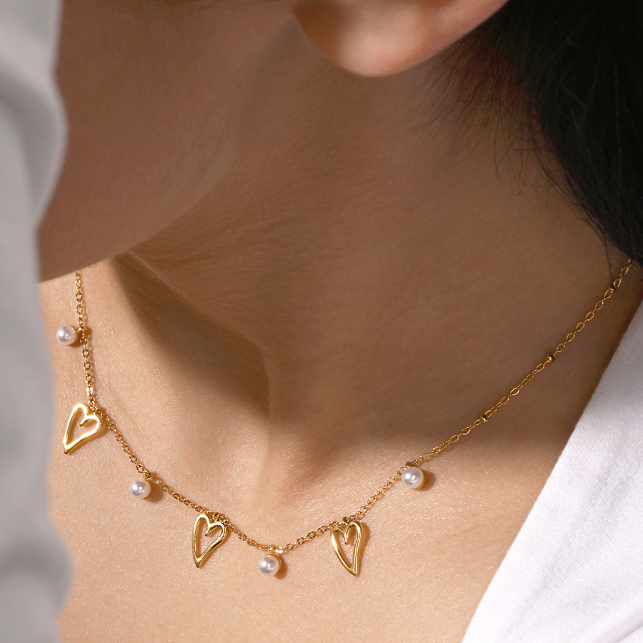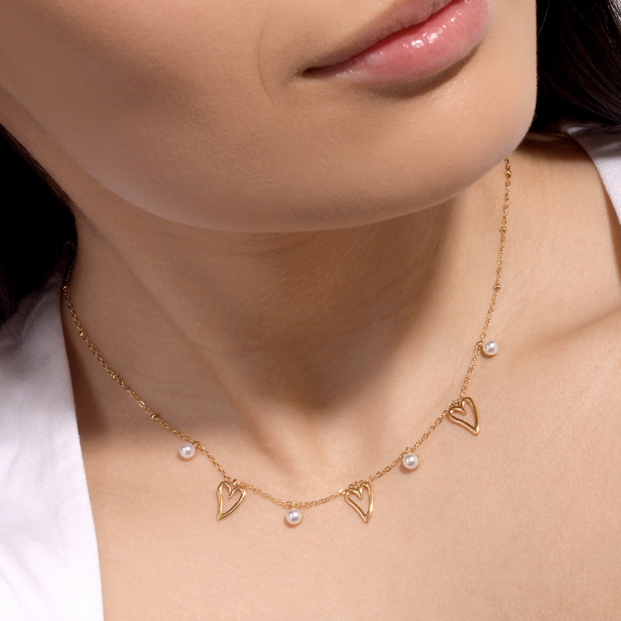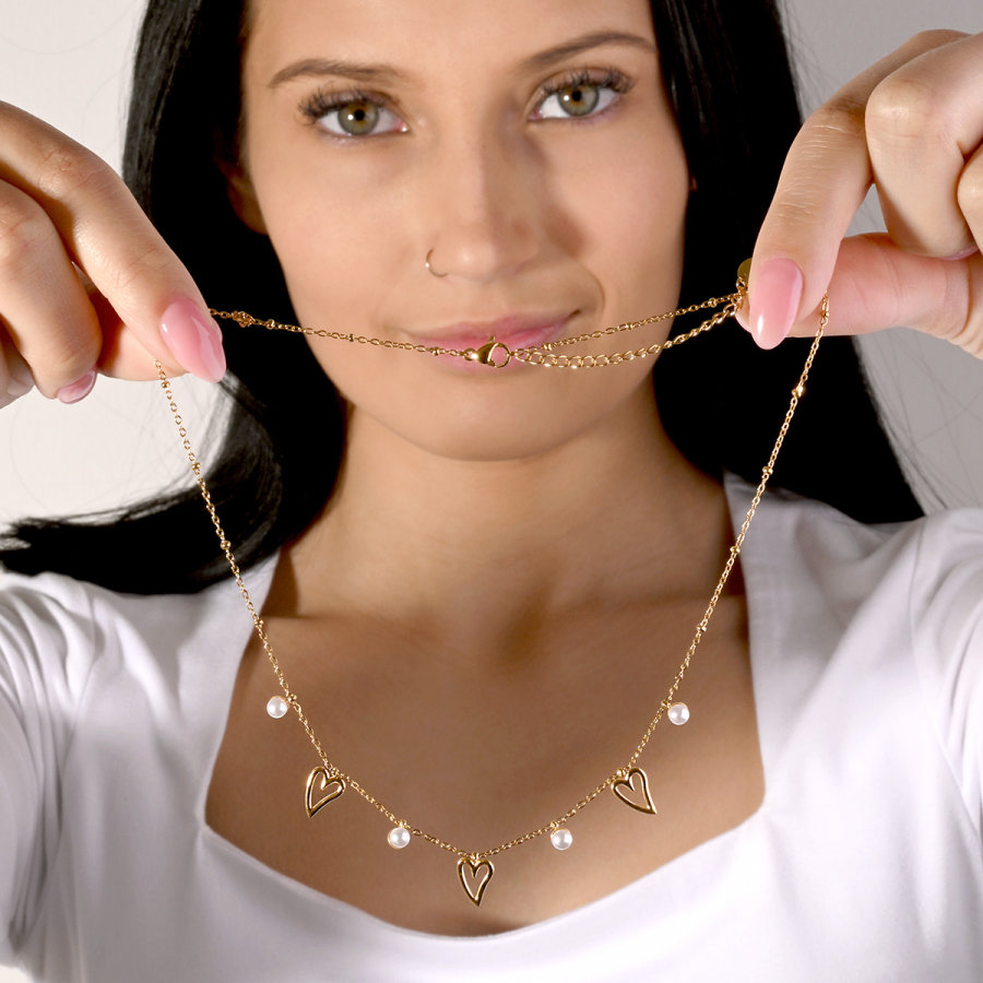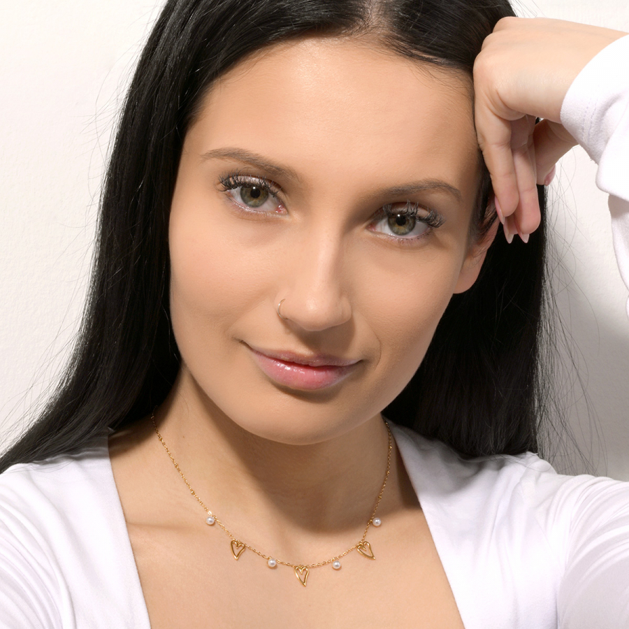 Náhrdelník s perličkami a srdiečkami 42025.1