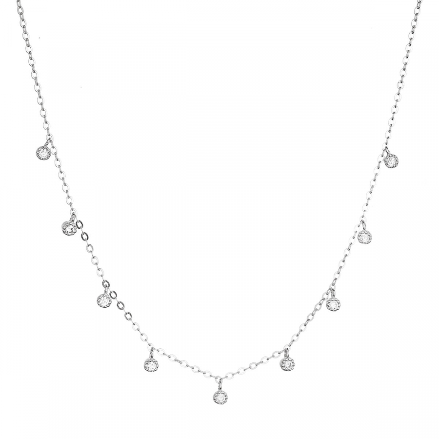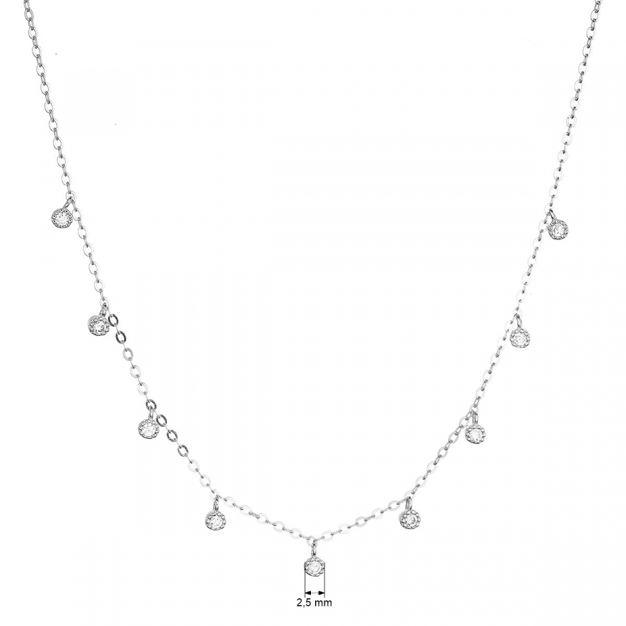 Strieborný náhrdelník má dĺžku 45 cm a je zdobený mnohými malými zirkónmi v bielej farbe. Na náhrdelník bolo použité striebro rýdzosti 925/1000, ktorého povrch prešiel úpravou ródiom . Rhodium šperk ochráni proti sčernaniu, zožltnutiu alebo poškriabaniu. Neobsahuje nikel , a tak ho môžu bez obáv nosiť aj alergici.