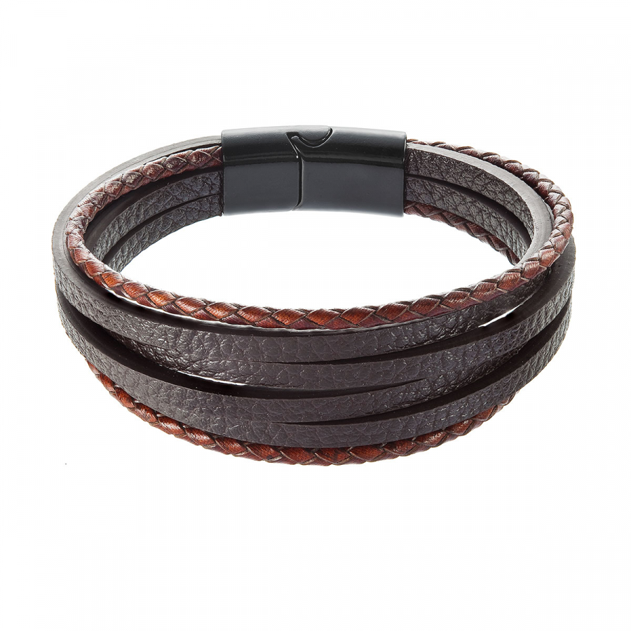 Náramok pánsky s koženkovými pásikmi 43037.3 hnedý