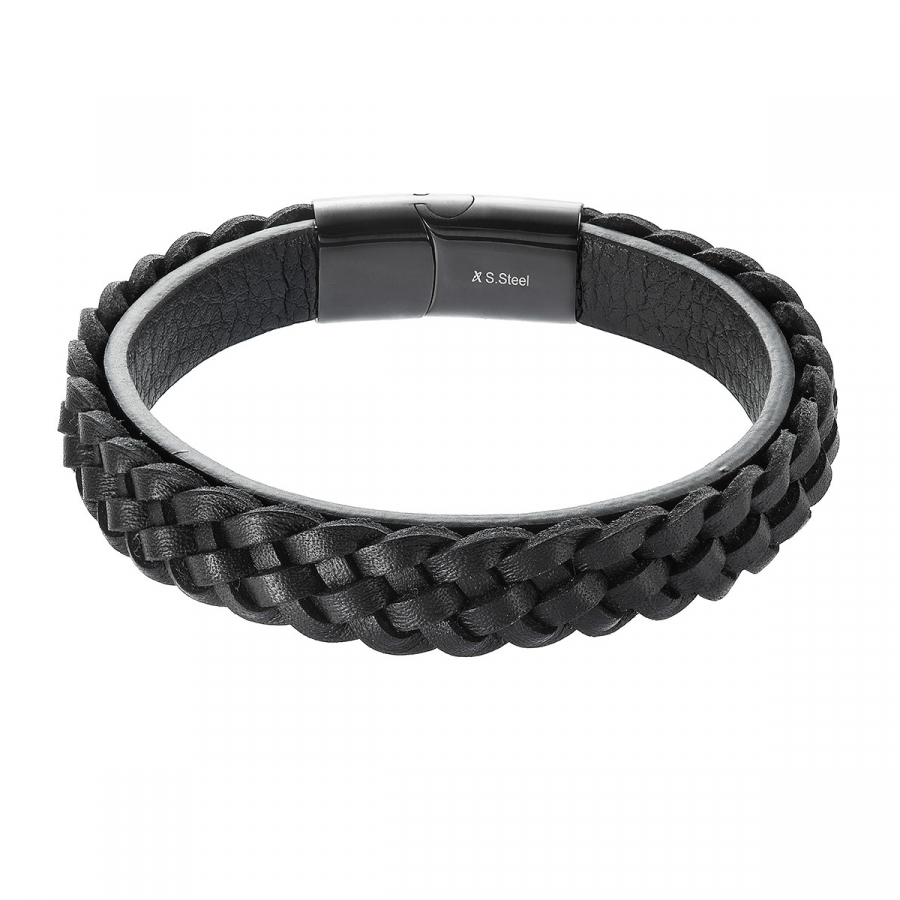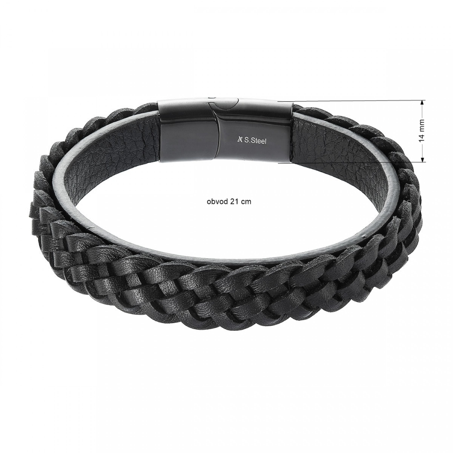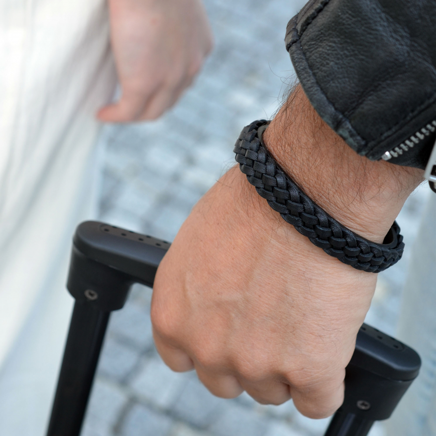 Náramok pánsky z recykl.kože zapletený vrkoč 43026.3 čierny