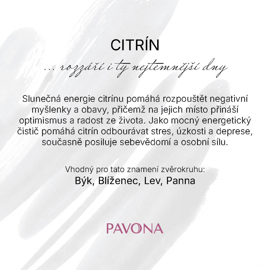 Náramok z pravého citrínu očarí svojou teplou zlatistou farbou, ktorá pripomína slnečné lúče. Namiesto klasických korálikov je zložený z oválnych kameňov s jemne brúsenými plochami, ktoré vytvárajú elegantný a harmonický celok. Vďaka elastickému prevedeniu sa náramok ľahko prispôsobí zápästiu a poskytuje pohodlné nosenie po celý deň. Slnečná energia citrínu pomáha rozpúšťať negatívne myšlienky a obavy, pričom na ich miesto prináša optimizmus a radosť zo života. Ako mocný energetický čistič pomáha citrín odbúravať stres, úzkosti a depresie, súčasne posilňuje sebavedomie a osobnú silu.