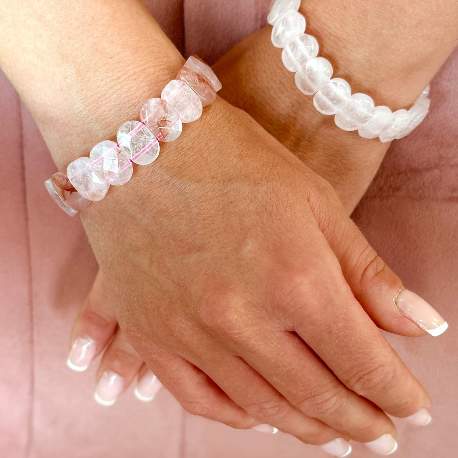 Jemný a elegantný náramok z pravého ruženínu je symbolom lásky, harmónie a nežnosti. Namiesto klasických korálikov je zložený z oválnych kameňov s jemne brúsenými plochami, ktoré majú krásny svetlo ružový odtieň, ktorý pôsobí romanticky a zároveň decentne. Prehlbuje city, vášeň a nežnosť. Nesmelým pomáha prejavovať skrývané pocity. Ruženín nás tiež učí trpezlivosti pri riešení problémov. Medzi vlastnosti ruženínu patrí aj to, že dáva silu odpúšťať nám samotným aj ostatným a učí sebaláske. Elastické prevedenie zaisťuje ľahké nosenie a pohodlné prispôsobenie zápästia.