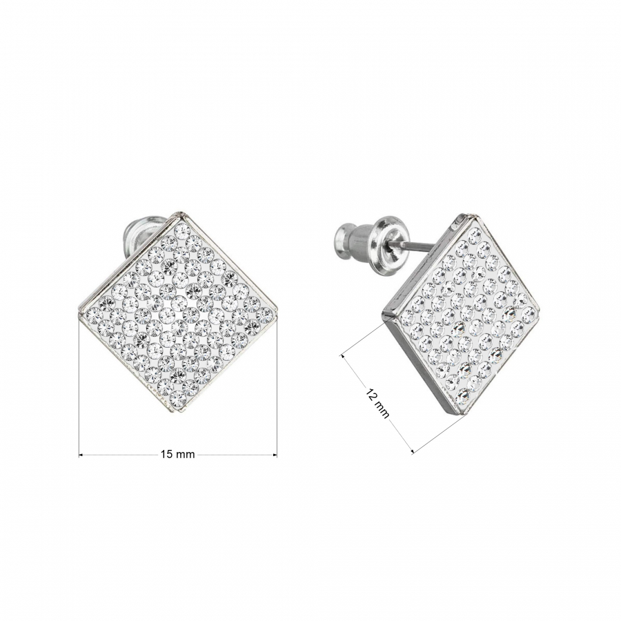 Parametre bižutérnych náušníc s Preciosa kryštálmi kosoštvorec biela 51077.1 crystal