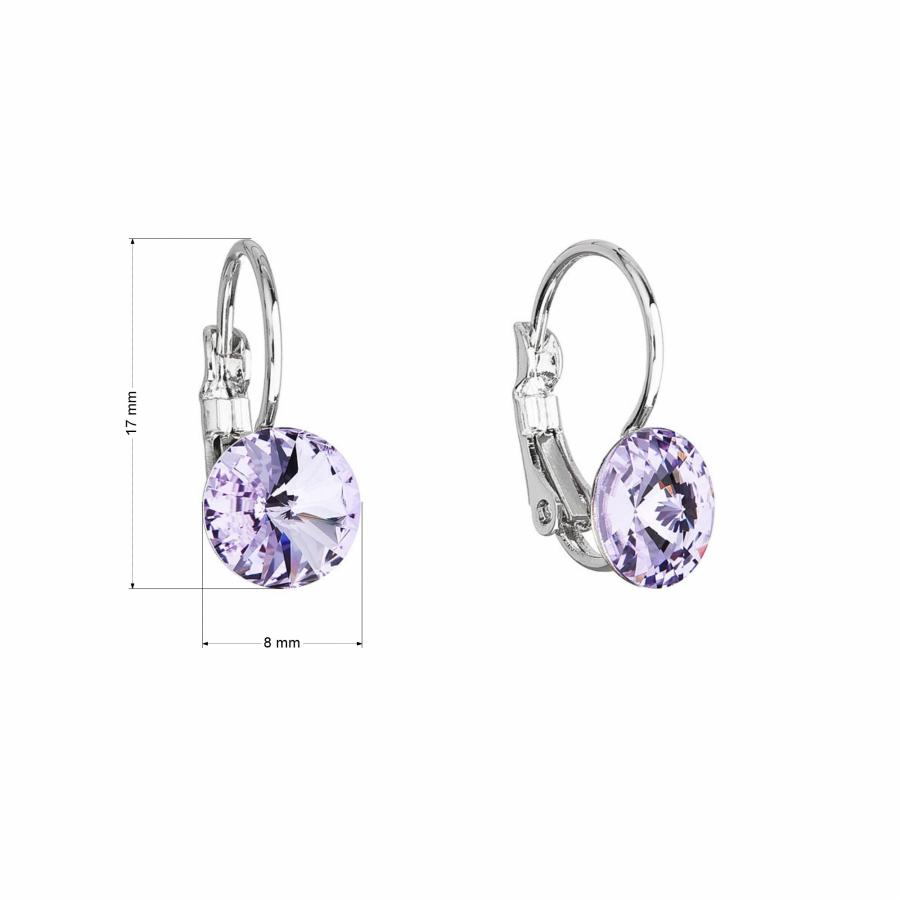 Náušnice majú dĺžku 17 mm a zapínajú sa na klapku . Šperk je zdobený okrúhlym 8 mm širokým Preciosa kryštálom vo fialovej farbe.