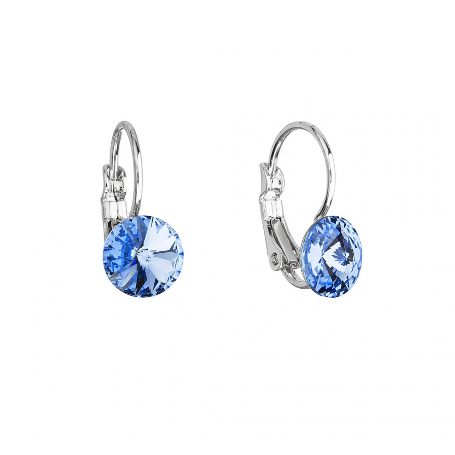 Náušnice majú dĺžku 17 mm a zapínajú sa na klapku . Šperk je zdobený okrúhlym 8 mm širokým Preciosa kryštálom v sapphirovej farbe.