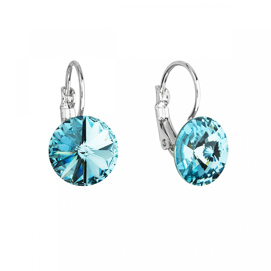 Bižutérne náušnice 51002.3 majú dĺžku 20 mm a zapínajú sa na klapku . Šperk je zdobený okrúhlym 12 mm širokým Swarovski kryštálom v tyrkysovo modrej farbe.