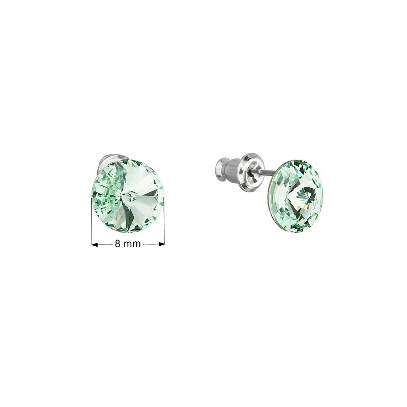 Bižutérne náušnice typu pecka sú zdobené Swarovski kryštálmi s priemerom 8 mm. Kryštály sú v zelenej farbe. Náušnice sa zapínajú na puzetu, ktorá ich dostatočne ochráni proti nechcenej strate.