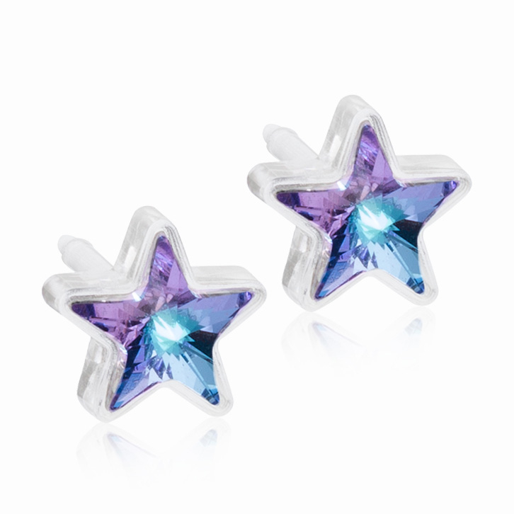 Nealergénne náušnice z lekárskeho plastu Hviezdičky 6 mm fialové AB