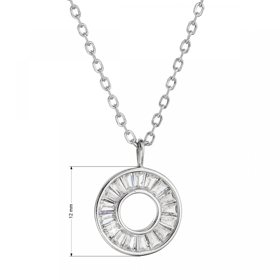 Strieborný náhrdelník je vyrobený zo striebra o rýdzosti 925/1000 s povrchovo úpravou ródiom. Na retiazke je okrúhly prívesok s trblietavým zirkónom v bielej farbe. Šperk neobsahuje nikel , a tak je vhodný pre citlivé osoby aj pre alergikov.