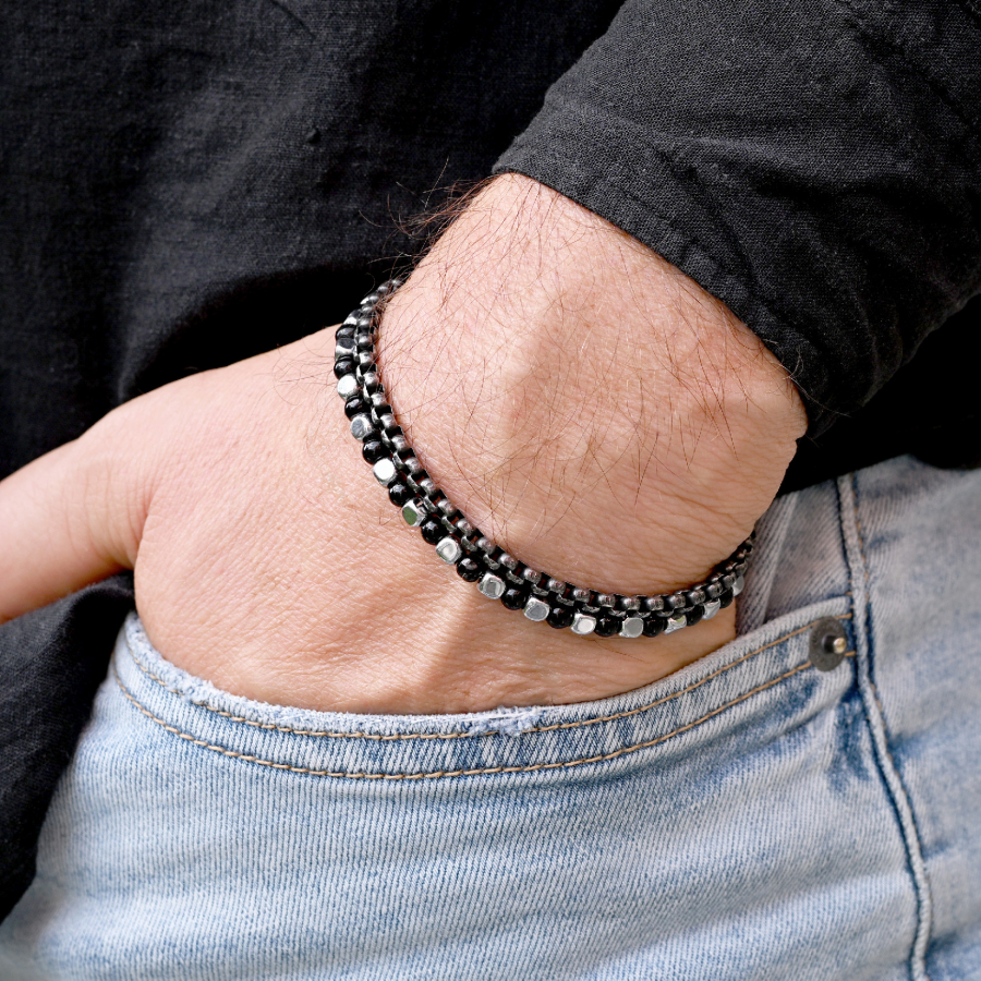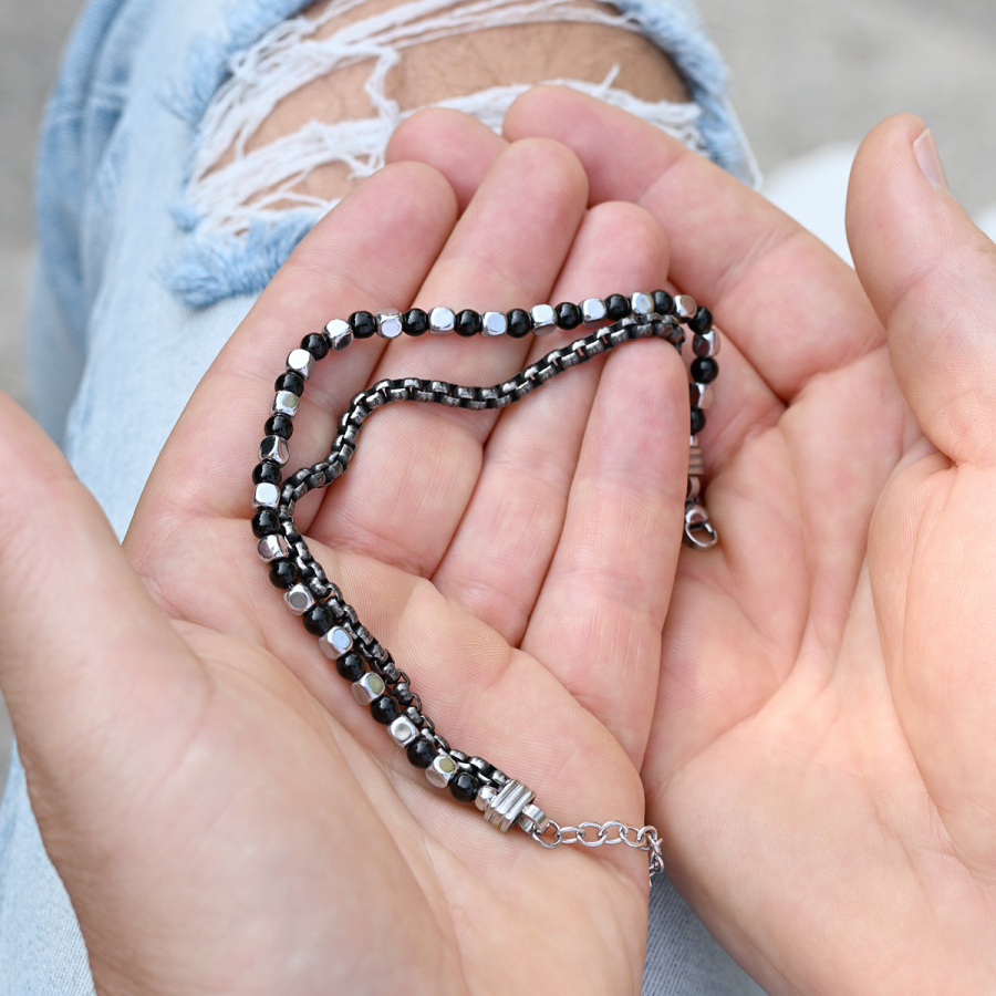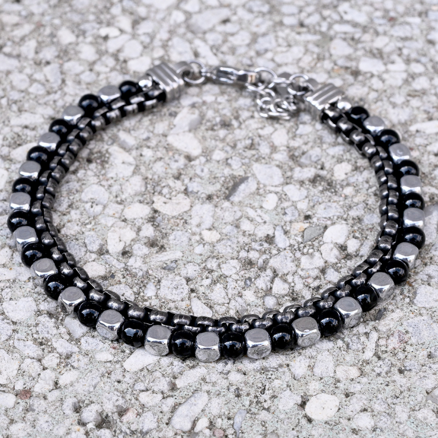 Oceľový náramok s achátom 43085.3 čierny