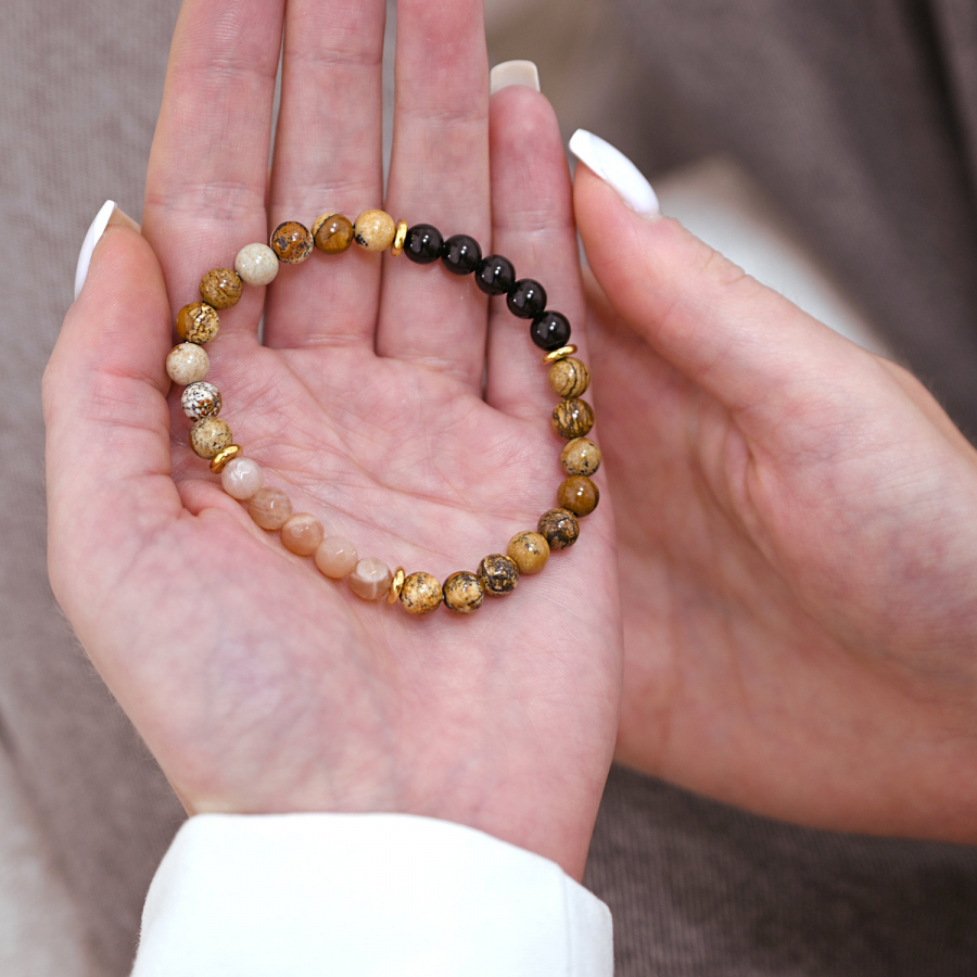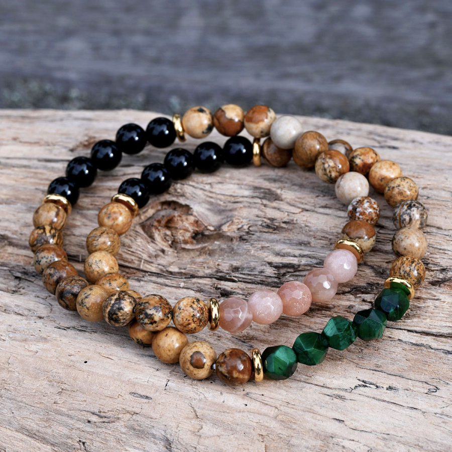 Oceľový náramok s minerálnymi kameňmi achát, jaspis 43080.3