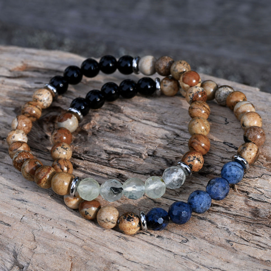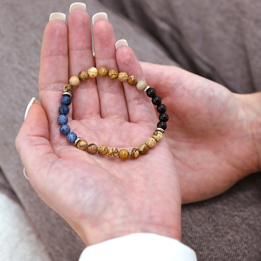 Oceľový náramok s minerálnymi kameňmi achát, jaspis 43080.3