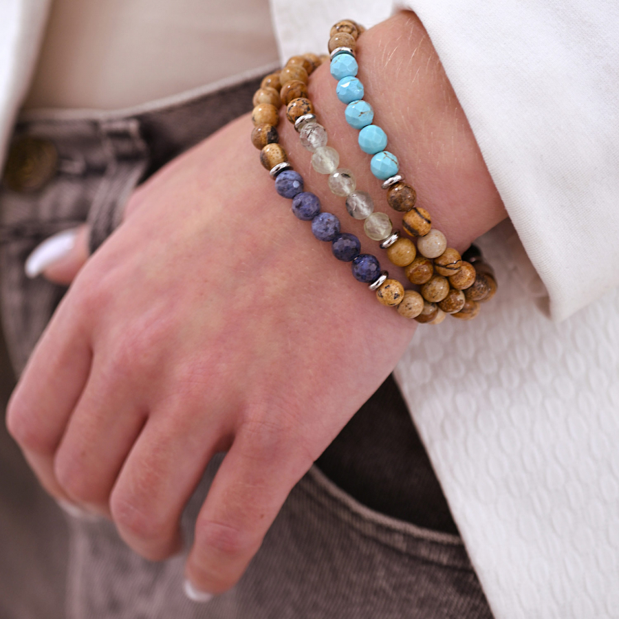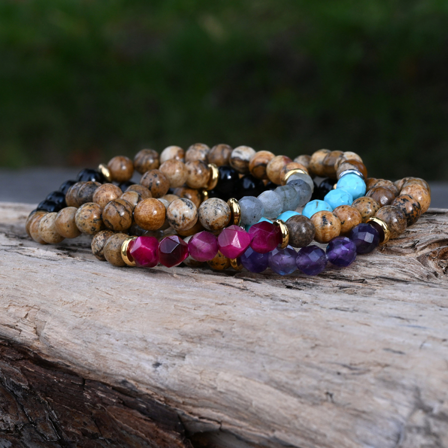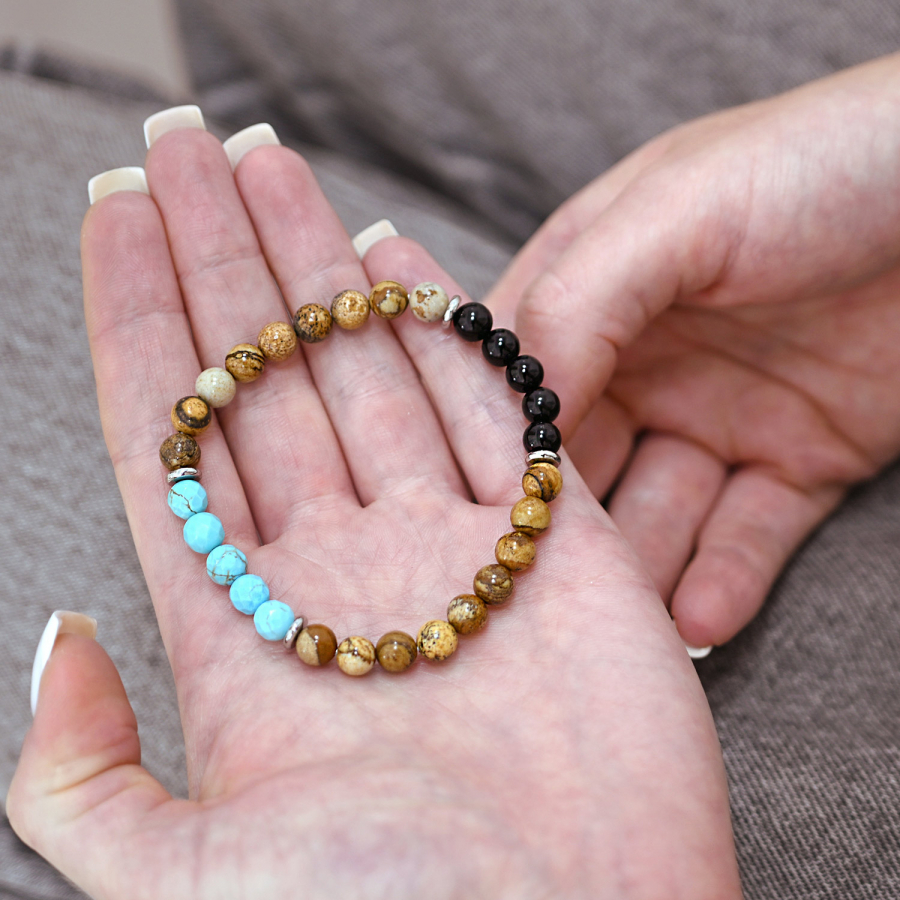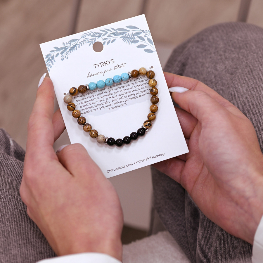 Oceľový náramok s minerálnymi kameňmi achát, jaspis, tyrkys 43080.3