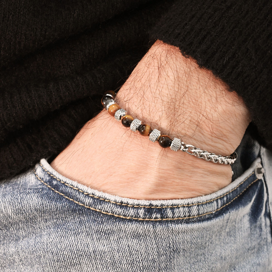 Tento štýlový pánsky náramok je možné na zápästí nosiť samostatne alebo spolu s ďalšími náramkami a doplnkami.