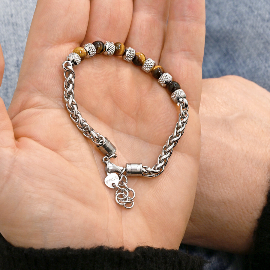 Náramok 43042.3 s hnedými korálkami je vyrobený z ocele s korálkami . Korálky sú nestarnúcim doplnkom každého zápästia.
