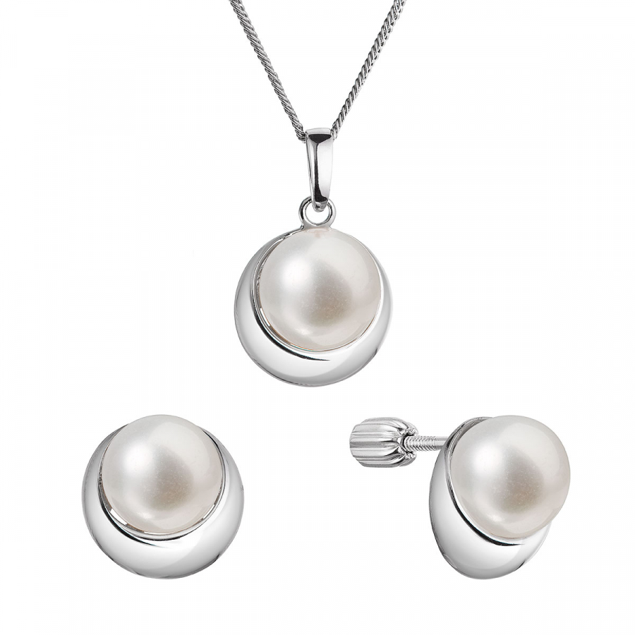 Perlová súprava polmesiac s riečnou perlou biely 29053.1B