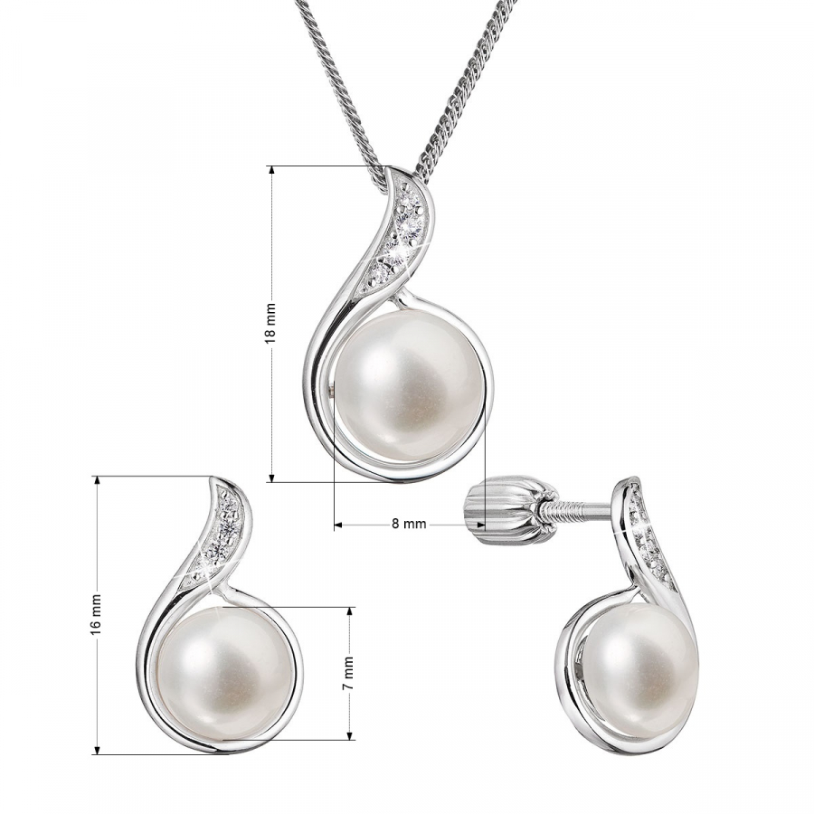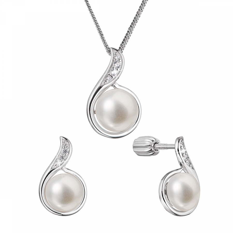 Perlová súprava slzička s riečnou perlou a zirkónmi biela 29050.1B