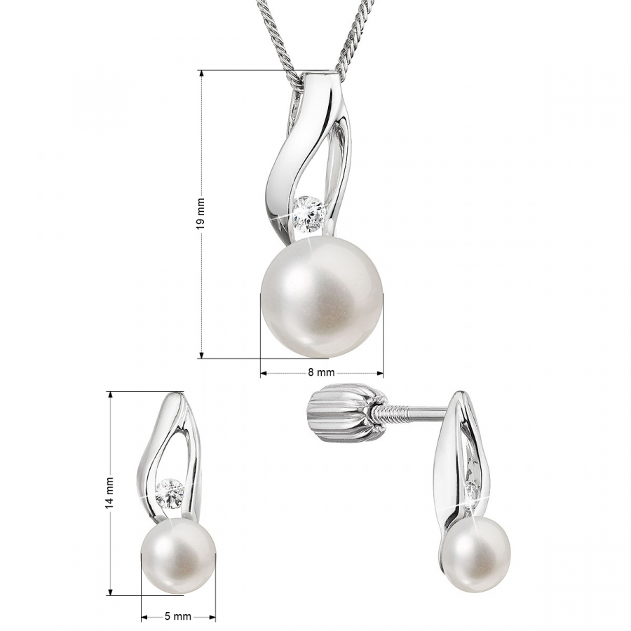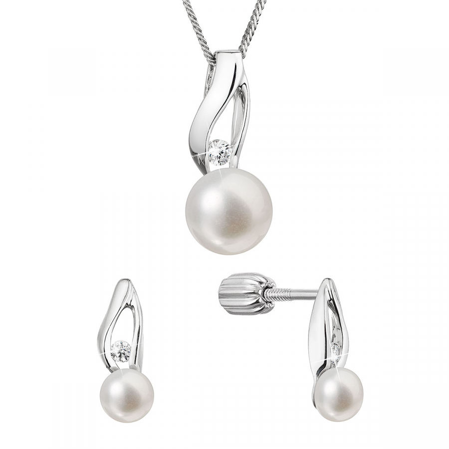Perlová súprava so zirkónmi a bielou riečnou perlou 29070.1B