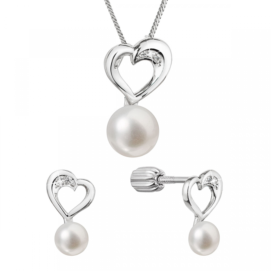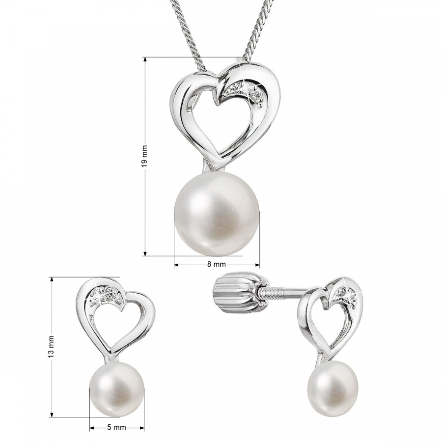 Perlová súprava srdca so zirkónmi a bielou riečnou perlou 29064.1B