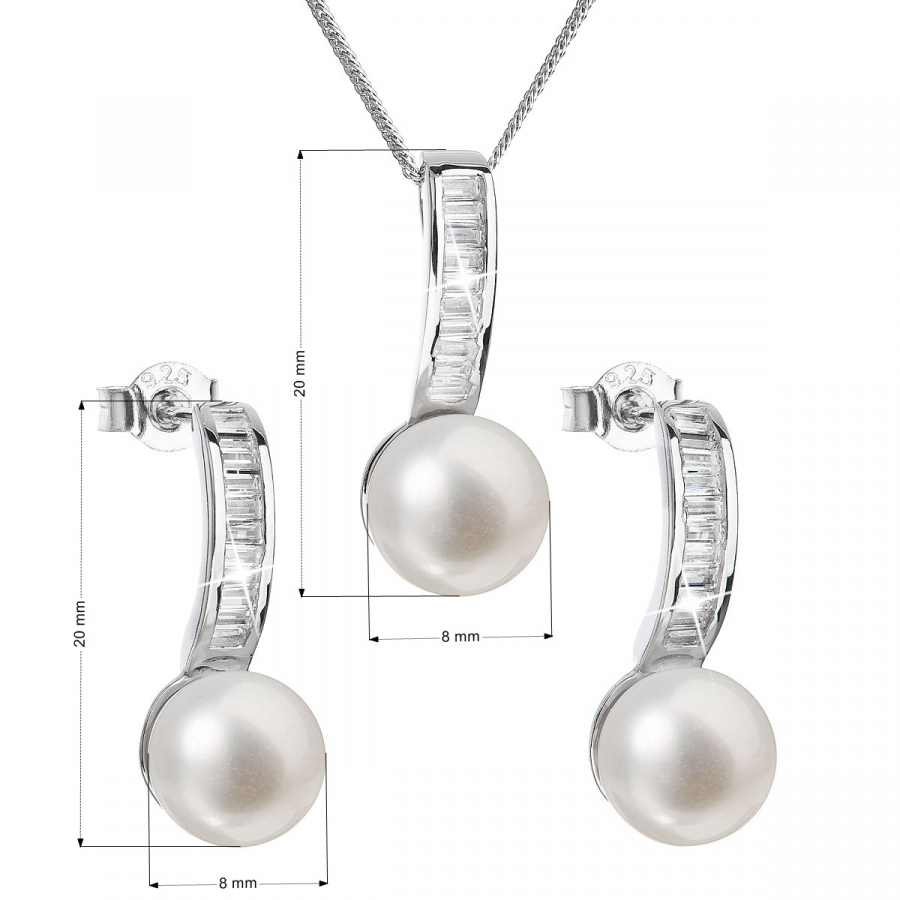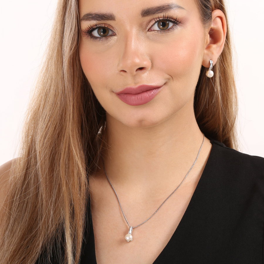 Súprava obsahuje visiace náušnice s dĺžkou 20 mm a 45 cm dlhý náhrdelník s perlovým príveskom. Šperky sú vyrobené zo striebra o rýdzosti 925/1000 vrátane povrchovej úpravy ródiom a perly, ktorými sú zdobené, patria do kategórie najvyššej kvality AAA . Elegantné šperky zo súpravy 29019.1 sú navyše vysadené malými zirkónmi , ktoré im dodajú ešte väčší punc luxusu. Tým, že súprava neobsahuje žiadny nikel , je vhodná aj pre alergikov. Zapínanie náušníc z tejto súpravy je na puzete.