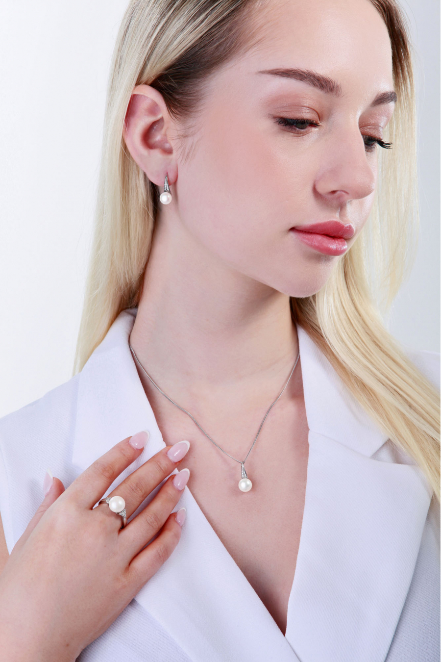 Šperky sú zdobené bielymi perlami patriace do kategórie kvality A s priemerom 7,5-8,5 mm. Použité striebro rýdzosti 925/1000 je vrátane povrchovej úpravy ródiom. Vzhľadom na to, že šperky neobsahujú nikel, nemusíte sa obávať žiadne alergické reakcie. Súčasťou súpravy je certifikát pravosti dokazujúci pravosť perál.
