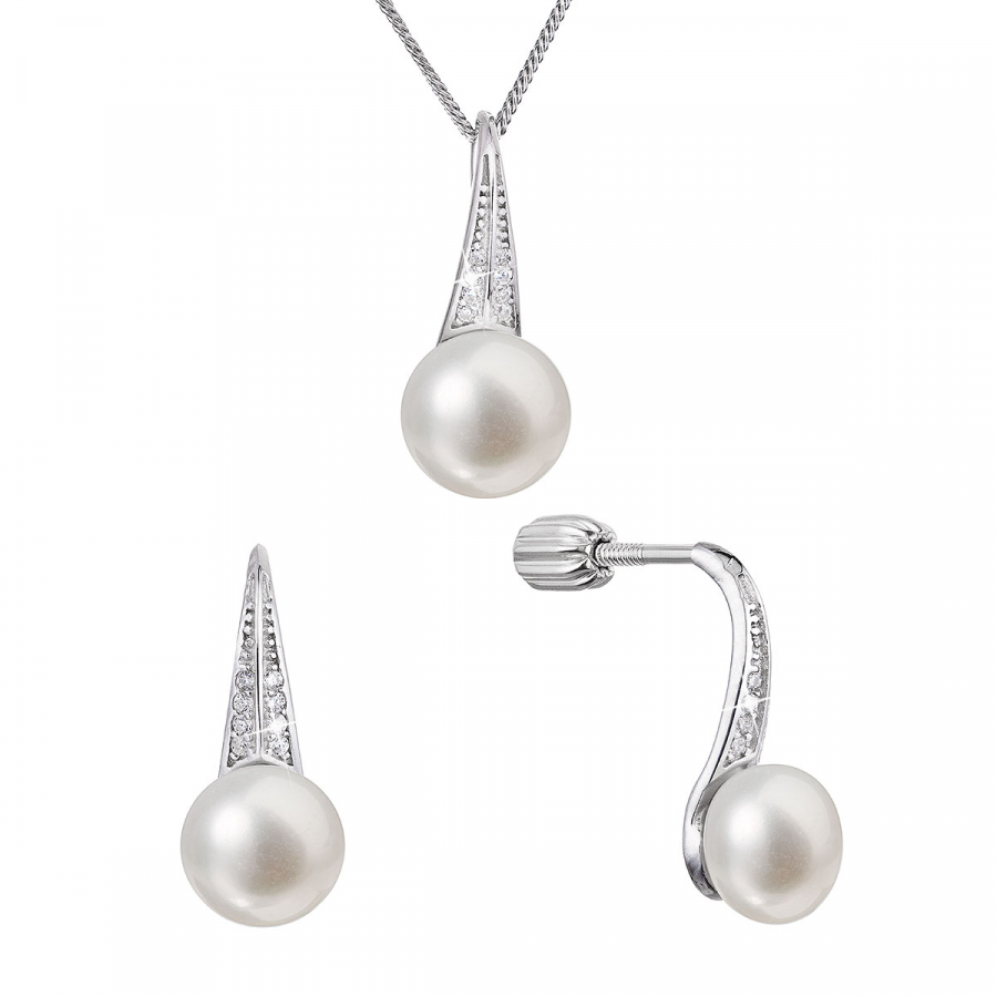Perlová súprava z riečnych perál a zirkónov biela 29045.1B