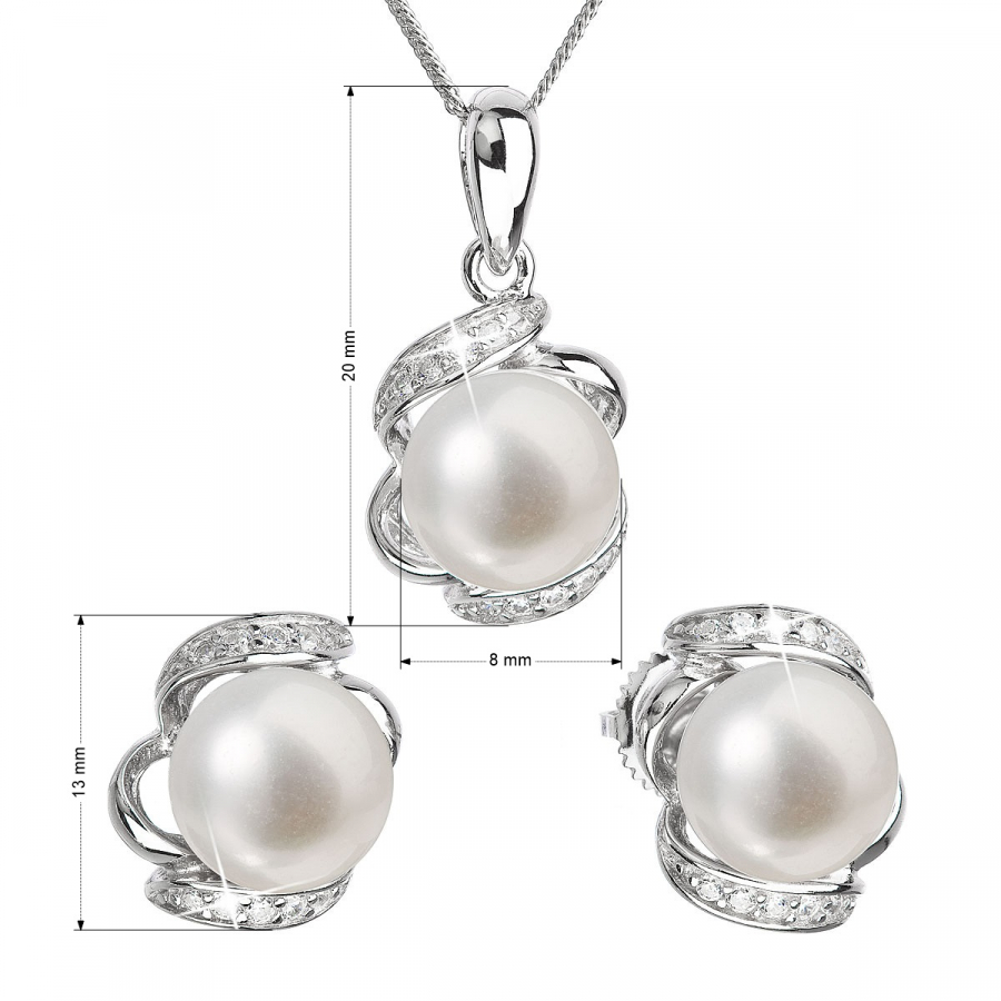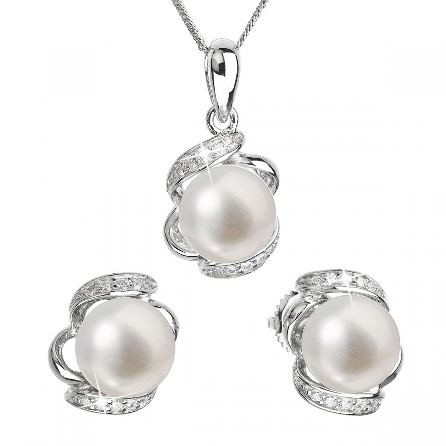 Súprava šperkov 29017.1 obsahuje okrúhle náušnice s bielymi perlami so zapínaním na skrutku a náhrdelník s perlovým príveskom. Perly, ktoré šperky zdobia, spadajú do kategórie kvality AA . Okrem perál sú šperky vysadené aj trblietavými zirkónmi. Náušnice aj prívesok skrášľuje celkom 10 zirkónov. Pri výrobe našich šperkov myslíme aj na alergikov, a preto nebol do súpravy pridaný žiadny nikel.