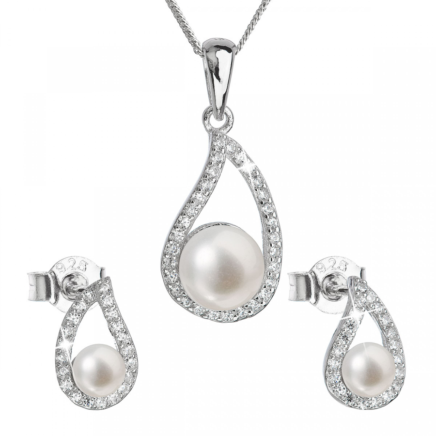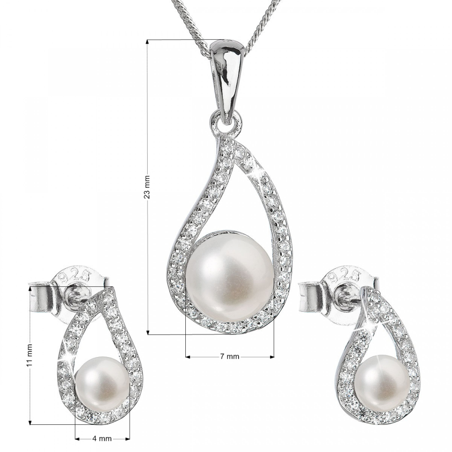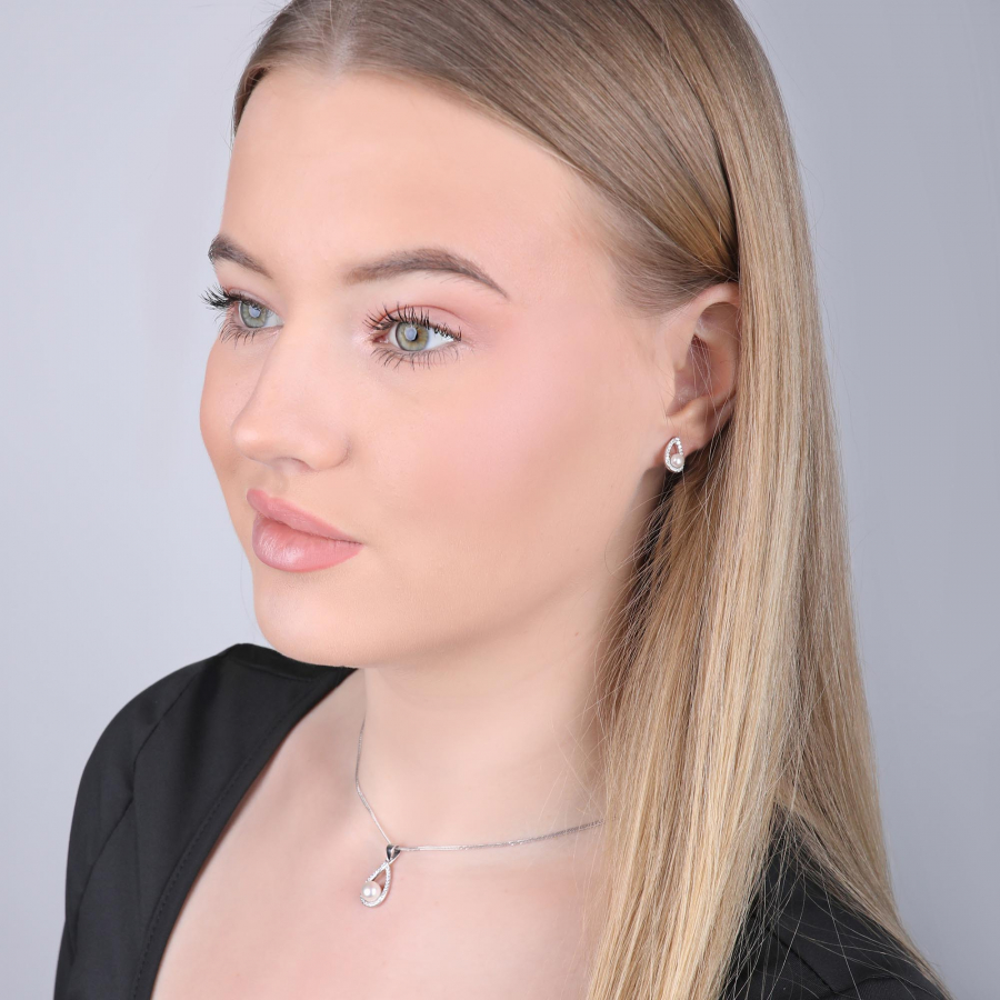 Perlová súprava obsahuje šperky vyrobené zo striebra rýdzosti 925/1000 vrátane povrchovej úpravy ródiom, ktoré sú v tvare nápaditých slzičiek . V súprave šperkov nájdete visiace náušnice s dĺžkou 11 mm a 45 cm dlhý náhrdelník s perlovým príveskom. Perly, ktorými sú šperky zdobené, spadajú do kategórie najvyššej kvality AAA . Okrem luxusných perál sú šperky zo súpravy 29027.1 doplnené veľkým množstvom malých zirkónov , vďaka ktorým sa šperky nádherne blýskajú. Na náušnici ich nájdete 22 a na prívesku je zirkónov dokonca 30. Veľkou výhodou šperkov zo súpravy 29027.1 je to, že neobsahujú nikel , a tak ich bez obáv môžu nosiť aj ľudia náchylní k alergickej reakcii. Zapínanie náušníc je na puzete , ktorá ich ochráni proti nechcenej strate.