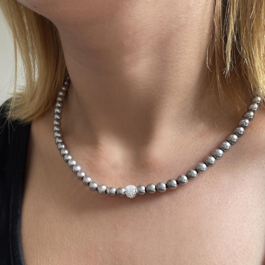 Perlový náhrdelník šedý s Preciosa kryštálmi 32063.3