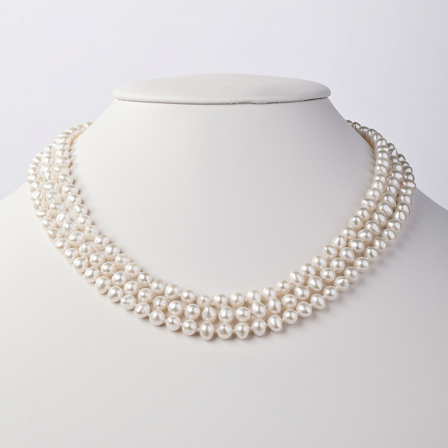 Parametre perlového trojradového náhrdelníka z pravých riečnych perál biely 22035.1