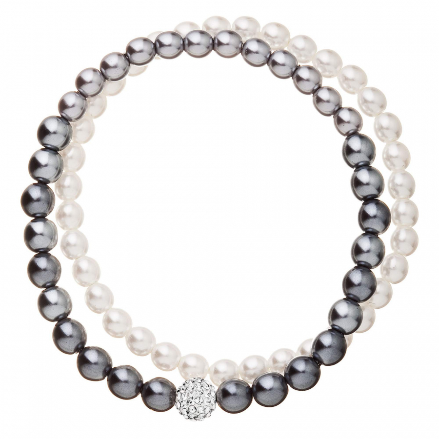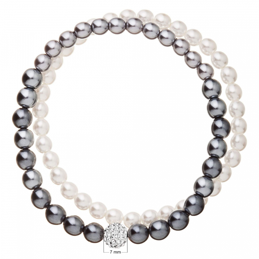 Perlový náramok biela šedá s Preciosa kryštálmi 33106.3
