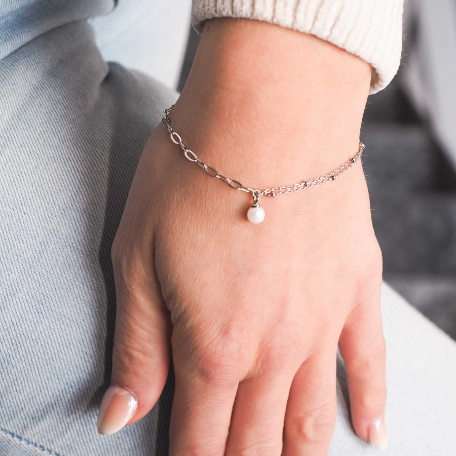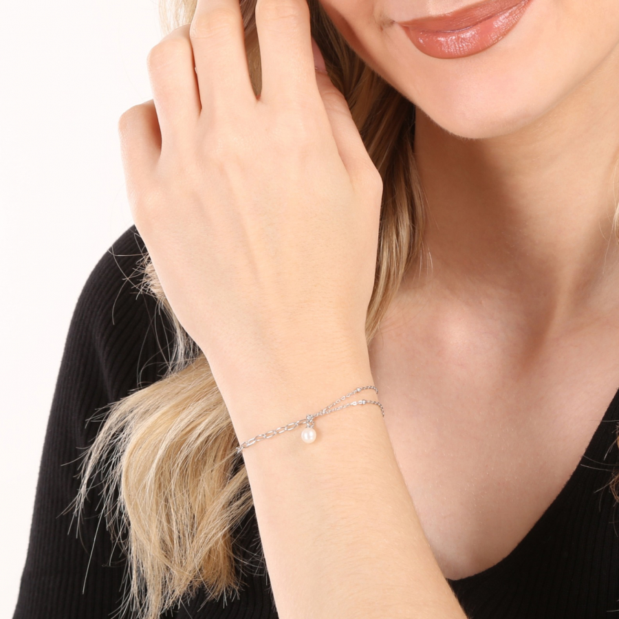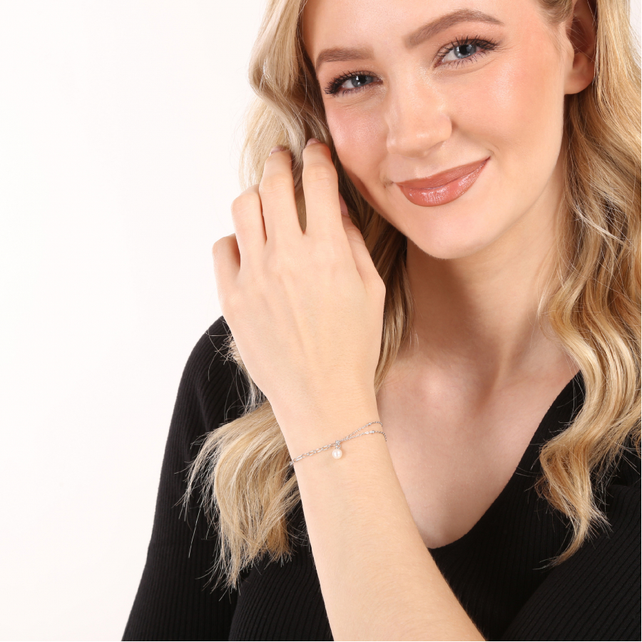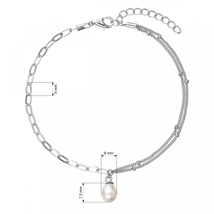 Náramok 23014.1 je vyrobený zo striebra rýdzosti 925/1000 , ktoré prešlo povrchovou úpravou ródiom. Ródium chráni šperk proti sčerneniu, zožltnutiu i poškriabaniu. Retiazkový náramok je ozdobený oválnou bielou riečnou perličkou o veľkosti 7,5 x 6 mm a kvality A . Keďže šperk neobsahuje žiadny prídavok niklu , môžu ho bez obáv nosiť aj alergici.