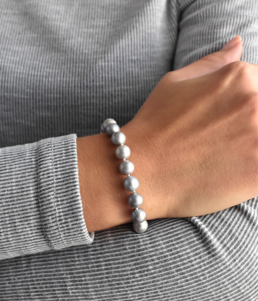- šedý perlový náramok